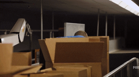 Meanwhile, Santa’s elves—read: warehouse workers—are hard at work getting presents packaged to travel across the country. But one malfunctioning crane sends a poor worker right into a giant cardboard box. Once again, something breaks the fall: Instead of baby Jesus, it’s a whole box of packing peanuts.