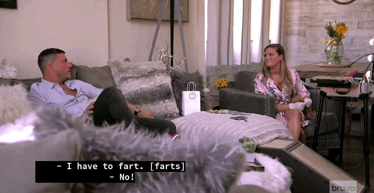 But Monday’s premiere finds him in their apartment, making her a mayonnaise-soaked turkey sandwich. Then, mere moments after delivering her sandwich, which she is presumably about to eat, he … farts. She pleads with him not to. He does anyway. Audibly. Loudly.