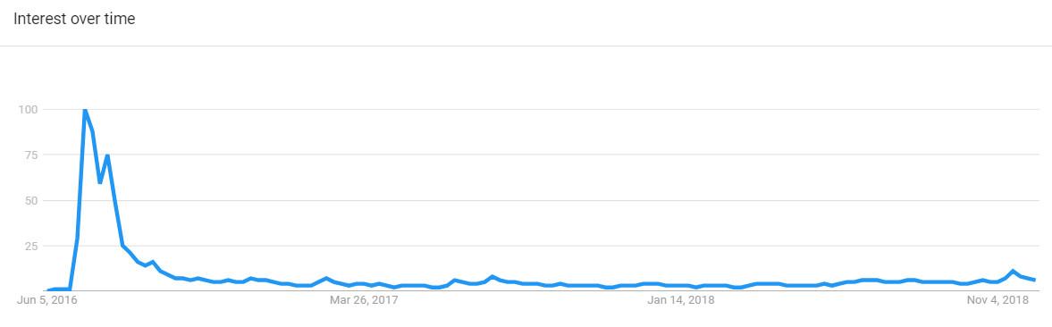 A comparison to Pokémon Go may be helpful here. Although there are still plenty of people playing the game (albeit far fewer than before), its heyday as a cultural phenomenon lasted only a few months, as indicated by worldwide Google Trends search data.