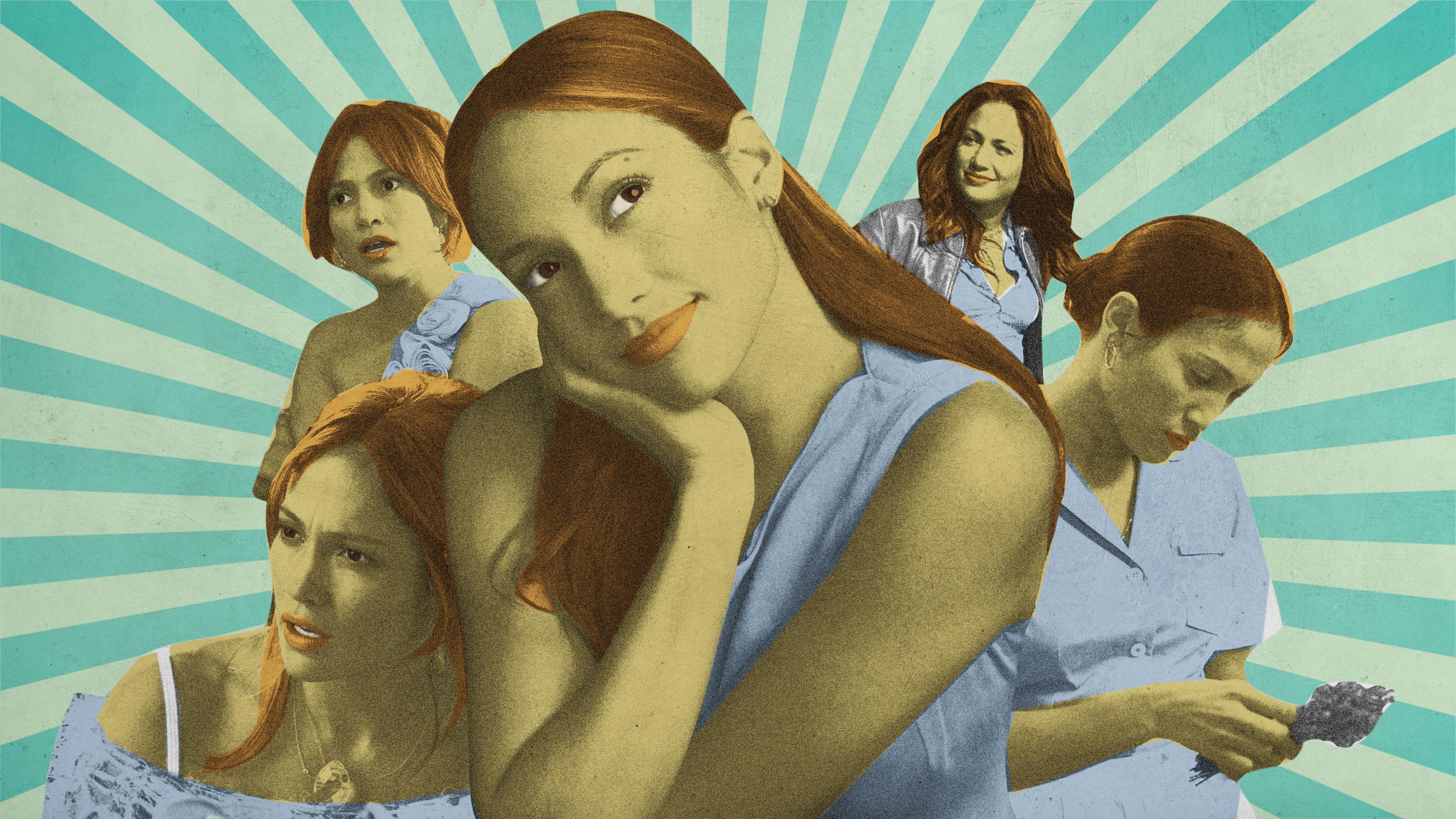 There was the time she and Matthew McConaughey accidentally ripped the penis off a garden statue and then accidentally Krazy Glued it to his hand while trying to stick it back on. There was the time she fell in love with Ralph Fiennes despite his only real personality trait being that he owned a large dog. There was the time she got in a vicious slap fight with Jane Fonda while wearing a wedding dress. There was the time she got so distracted watching her goat-farmer boyfriend mow the lawn shirtless that she drove her car into a tree. There was the time she reclined amorously on a bed and purred, “It’s turkey time—gobble gobble” to her real-life boyfriend Ben Affleck in one of the worst movies of our young century. No, the romantic-comedy universe has never known quite what to do with Jennifer Lopez, and for all her queenly ubiquity, she has never quite known what to do within it.