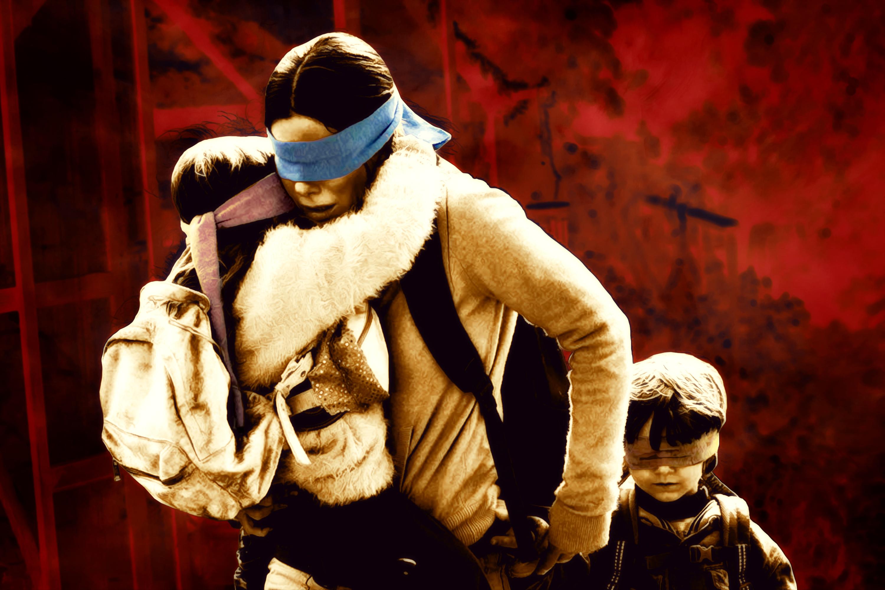 Bird Box begins loudly and in media res, with a close-up of Sandra Bullock’s face in stern admonishment: “Under no circumstance are you allowed to take off your blindfold. If I find that you have, I will hurt you. … If you look, you will die.” Only after this dire warning do we see that it’s being delivered to two young children, wide-eyed and silent, clutching stuffed animals. In juxtaposing the intense severity of Bullock’s words against the visible innocence of her audience, Danish director Susanne Bier’s new movie opens by throwing viewers into a world where motherhood isn’t characterized by softness and safety, but by violence and fear.