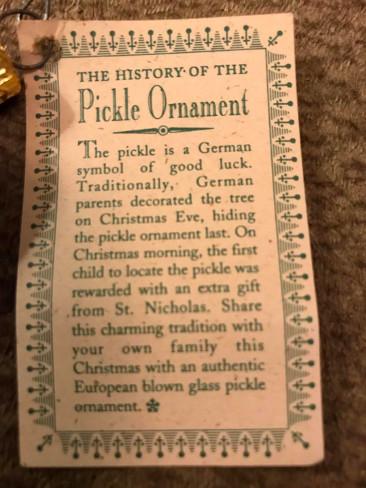 “My wife and I both come from families that did it on both sides, but it seemed German was the only common ancestral origin. It was usually a game where the first kid to find the pickle won something,” Wisconsin-raised Chris Brzinski told The Ringer. “It’s only now as an adult that I have perspective on how truly disturbing it was for old people to invite children to their homes and ask them to find the hidden pickle.”