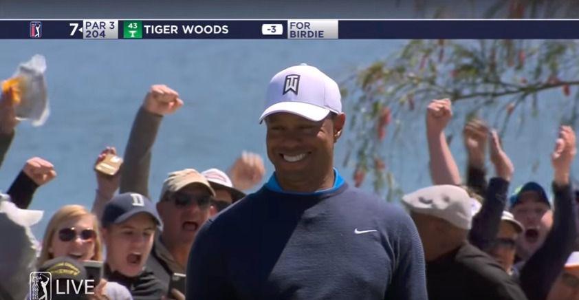 Back in March, Tiger was playing in the first round of the Arnold Palmer Invitational when he lined up for a 71-foot birdie putt at the par-3 seventh hole. At that time Woods was still in the infancy of his comeback, having played in just four tournaments since the start of the year, but the hype had started to build around him after his T-2 finish at the Valspar Championship a week prior. The crowd surrounding the green was quiet as Woods tapped the ball to start its motion, and seemingly no one made a sound until the ball rolled into the cup a full eight seconds later. As the crowd started to roar, Woods couldn’t help but laugh. And almost immediately, this image started flying around the internet: