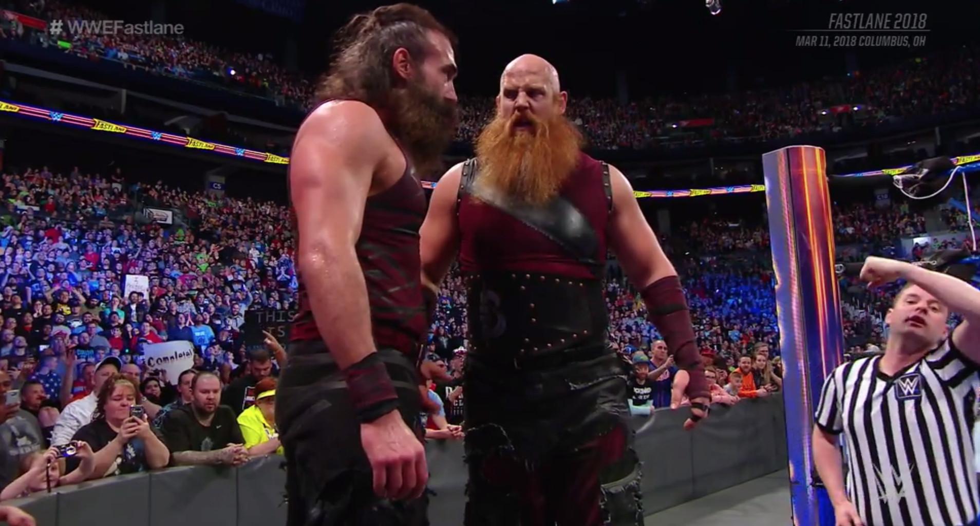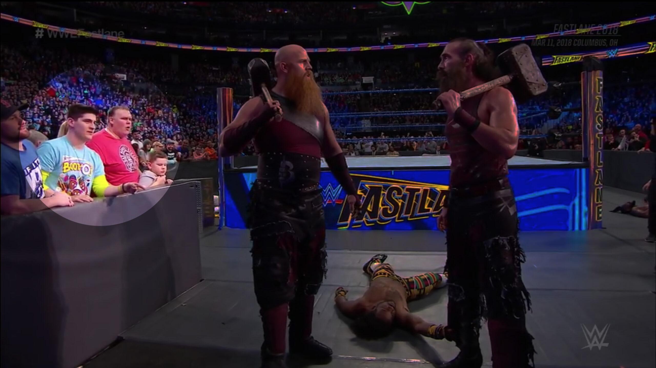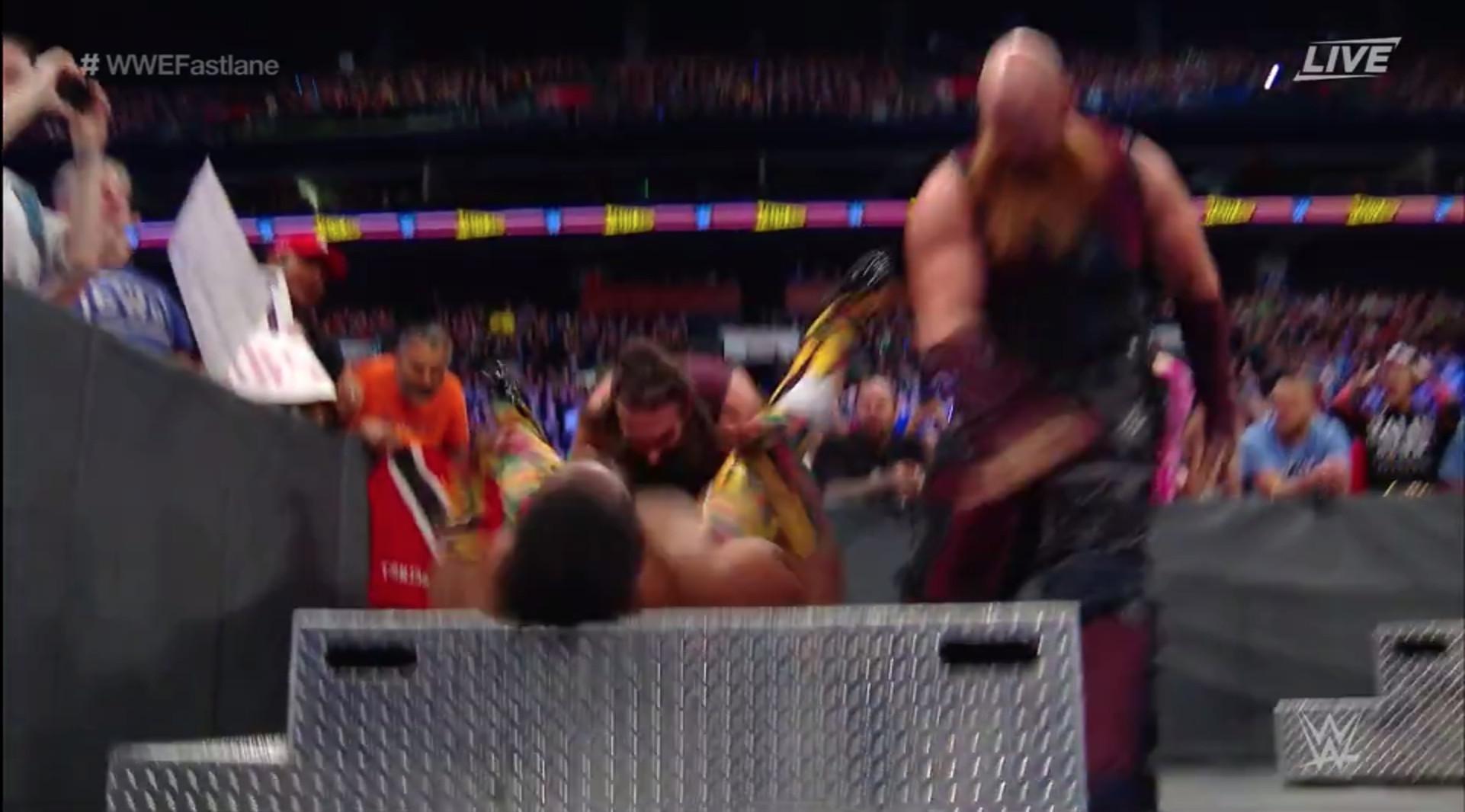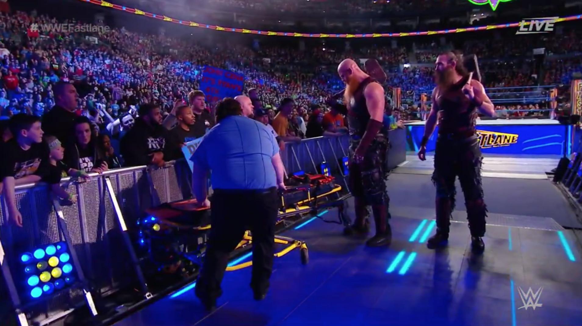 After all that buildup, the concluding chapter in New Day and the Usos’ grudgingly respectful rivalry turned out to be a glorified showcase for the Bludgeon Brothers’ WrestleMania push. On Sunday, in the midst of Fastlane’s tag-title tussle — featuring New Day’s Kofi Kingston and Xavier Woods vying for Jimmy and Jey Uso’s belts — Luke Harper and Erick Rowan ran interference on the lot of them, prompting a no-contest and culminating in a vicious powerbomb thudding Woods atop the ringside steel stairs.