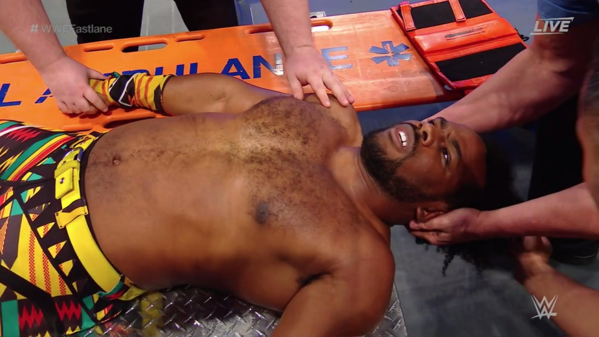 Generally, when one shows symptoms of upper- and middle-back trauma, they’re at least outfitted with a neck brace to limit mobility, but in this instance, Woods is transferred to the stretcher as if he were already deceased. There’s another wrestling rule worth considering — when you’re seeing something happen on your TV screen, you’re supposed to be seeing it. If some watching at home might still believe Woods is hurt, then he — and WWE — did exactly what they intended to do. This was, without a doubt, the plan, as there’s plenty of heat heading into the Bludgeon Brothers’ assumed faceoff against frenemies New Day and the Usos at WrestleMania. Not only does sidelining Woods allow for the bigger New Day lineup (of Kofi and Big E) to take center stage, but memory serves that the trio did mighty fine trudging through after Big E went down with a groinal injury. Whatever the payoff, and regardless of what this all means for Woods, at least we’ll always have his high-pitched yelp in our heads reminding us that someone got hurt. And that’s the stuff great wrestling moments are made of.