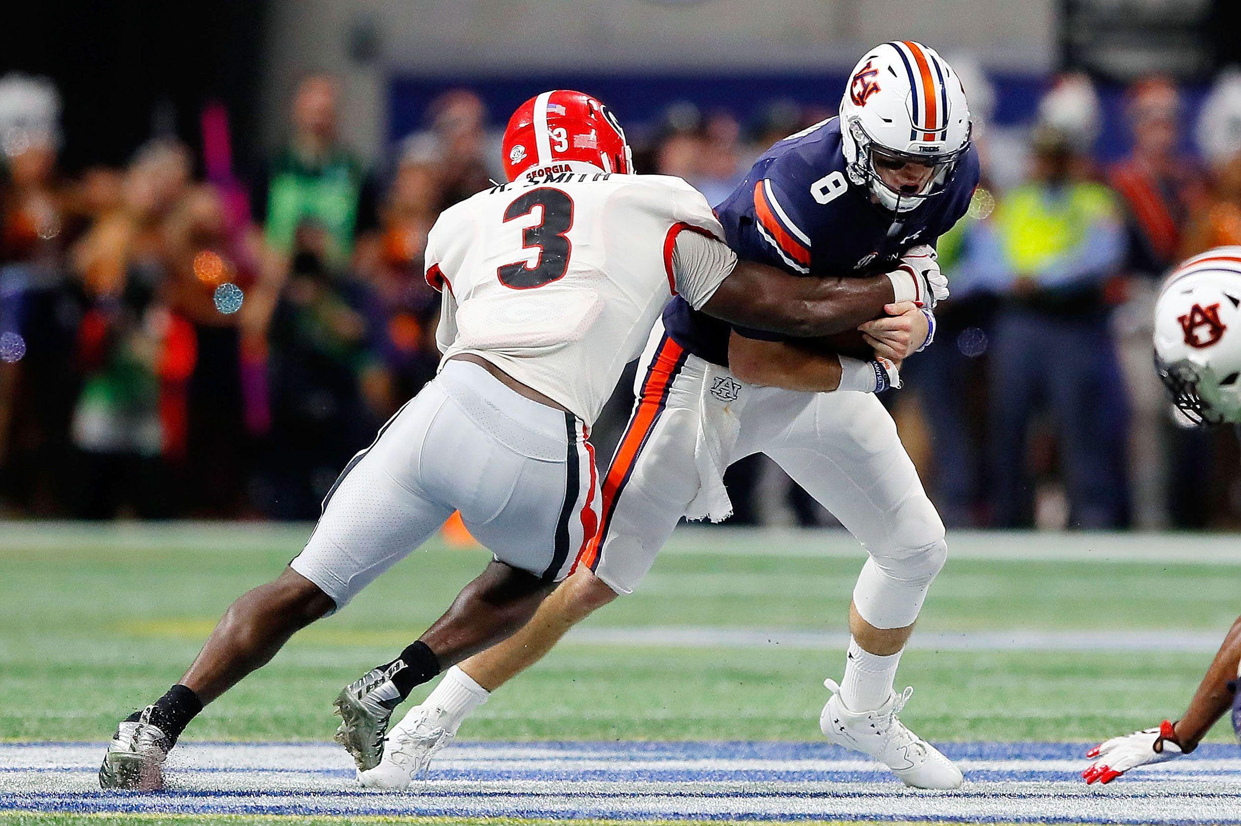 That’s where the evaluation and eventual draft position of a player like Smith becomes so fascinating. Edmunds, with his 6-foot-4, 253-pound frame and downright stupid testing numbers at the combine, is a safe bet to go in the top 10. But it’s reasonable to argue that Smith is the superior prospect, even with his smaller frame (6-foot-1, 236 pounds). Smith often resembles a running back’s shadow in coverage; his rare combination of athletic prowess and instincts helps him appear at ease even on the plays that are designed to attack him.