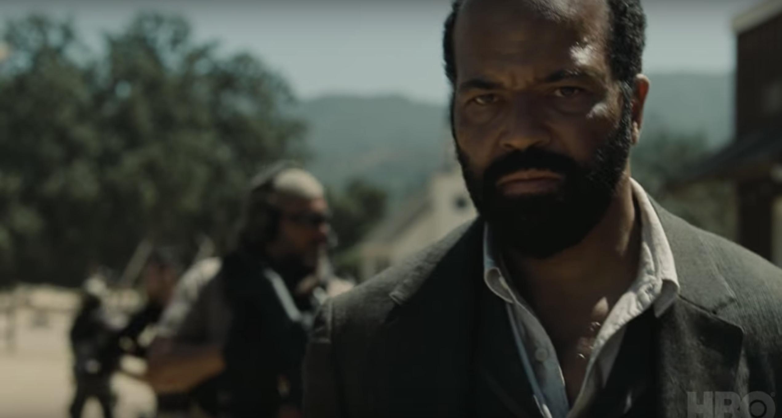 Bernard (Jeffrey Wright) was revealed in Episode 7 to be a host created by Ford to replicate his late friend and creative partner, Arnold. Bernard has been working alongside humans to maintain Westworld (and perhaps the other worlds, too) for years. The trailer shows Bernard re-entering the scene of the banquet in the daylight—which looks like what would happen if John Wick blamed Delos for killing his dog—along with a Delos-hired security detail, and most of the trailers show him with human counterparts.