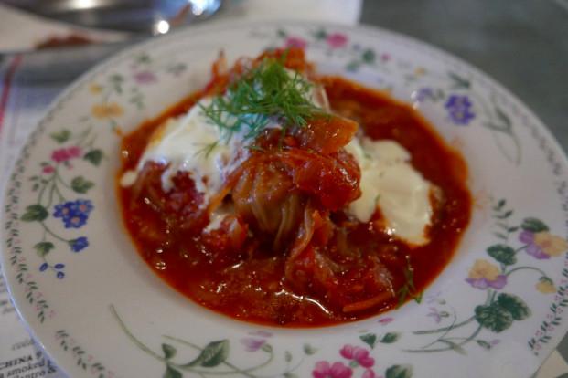 What a place to forget your night. Get there early (4 p.m. to 6 p.m.) or late (10 p.m. to 12 a.m.) for happy hour. Order what amounts to Kachka’s version of a boilermaker: a beer and 30 grams of one of their house-infused vodkas; the outstanding horseradish vodka ought to be used in exorcisms. Get the golubtsi, a ground mixture of beef, pork, and lamb wrapped in cabbage and cooked in a sweet and sour tomato sauce. You might find yourself compelled to order more of the infused vodkas, and then maybe also the beet-infused fernet. I might have forgotten many of my interactions at the restaurant by the end of my night, but I’ll fondly remember the sour-cherry vareniki: Ukrainian dumplings filled with a mixture of local sour cherries, topped with sour cream and ribbons of basil. It’s a dessert for people who don’t like dessert but like talking about layered, contrasting flavors and textures. Biting into the dense, toothsome exterior of the dumpling, immediately followed by the pop of the sour-cherry filling, was a gratifying sensation.