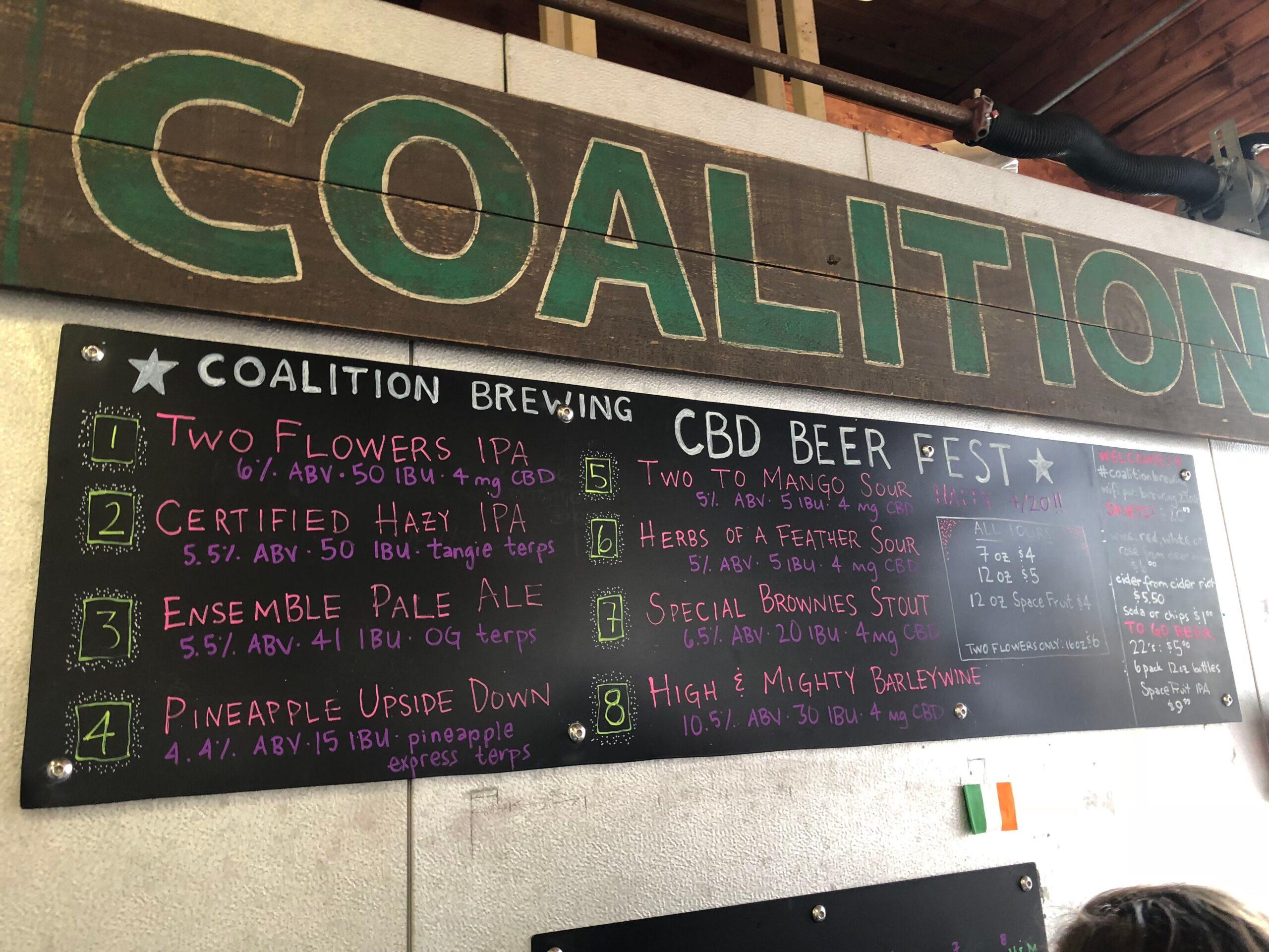 On a sunny April 20, Coalition held its inaugural CBD Beer Fest. The patio space was crowded, and a line for beer spanned the side of the building and spilled into the parking lot. A representative from True Terpenes running an informational station beckoned patrons to smell terpenes and learn more about their medicinal effects. A barbecue truck grilled meat in the parking lot, sending up delicious-smelling smoke, and everyone had one to two beers in hand. Many people were probably there to hear about the state of CBD regulation, but everyone was certainly there to drink the beer.