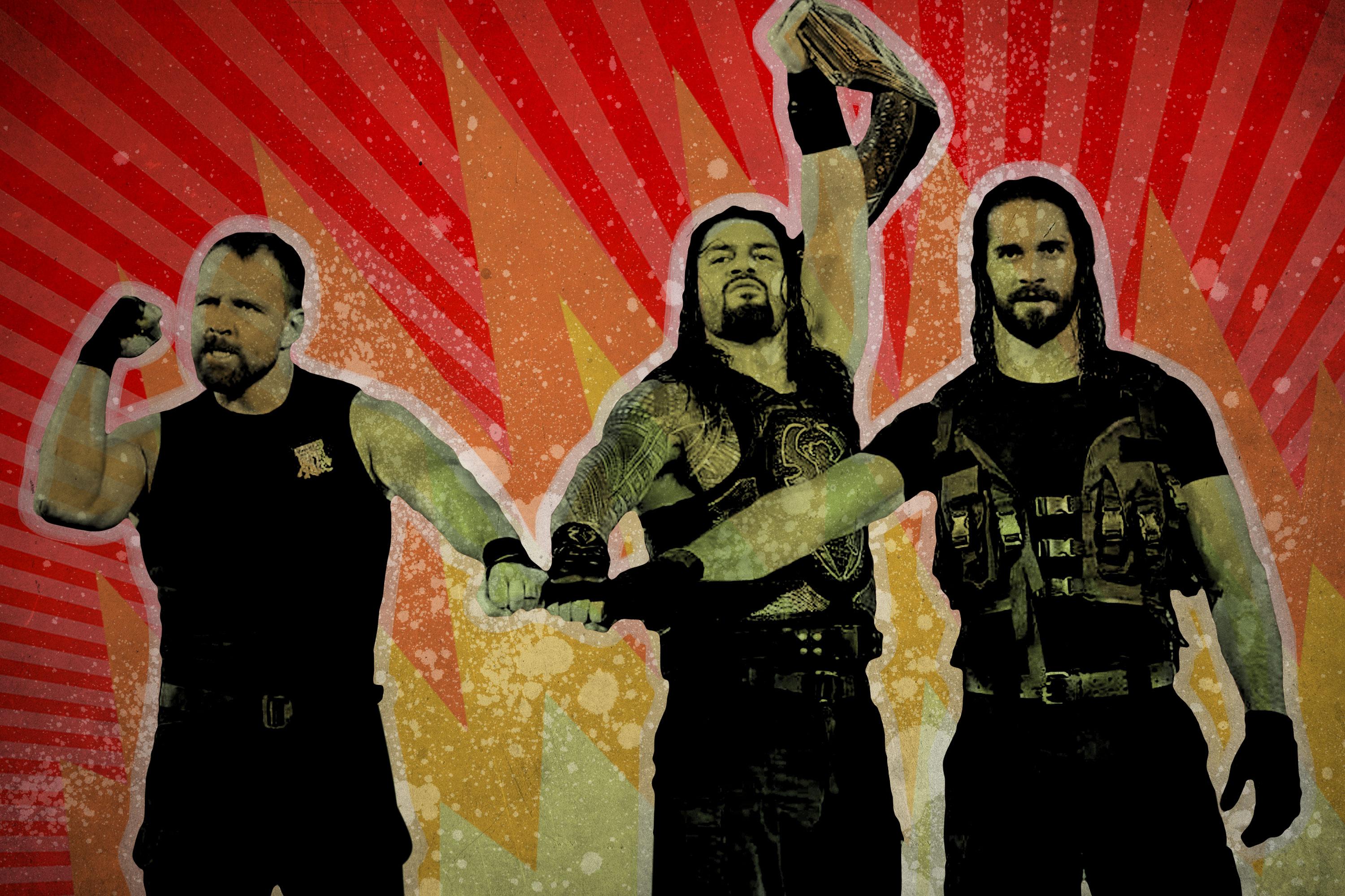 Shortly after the Hardys commercial, WWE played another promotional video, this one from its more recent past. It was about the Shield, a trio of up-and-comers who stormed into WWE in 2012. If it was a standard-issue commercial, it was a great coincidence. If it was deliberate—and it surely was—it was brilliant. The Shield consisted of Reigns, Rollins, and Dean Ambrose, who in real time just returned from the DL to an overwhelming chorus of cheers. Those cheers aren’t unusual for Rollins and Ambrose, though Ambrose’s return amped them up. From their first appearance at Survivor Series 2012—in ghastly black turtlenecks and cargo pants, quickly (thankfully) remodeled into full-on tactical gear, where they powerbombed Ryback through the announce table and helped CM Punk win the title—they were the embodiment of the seductive jolt that a true shock can bring. The crowd ate it up.