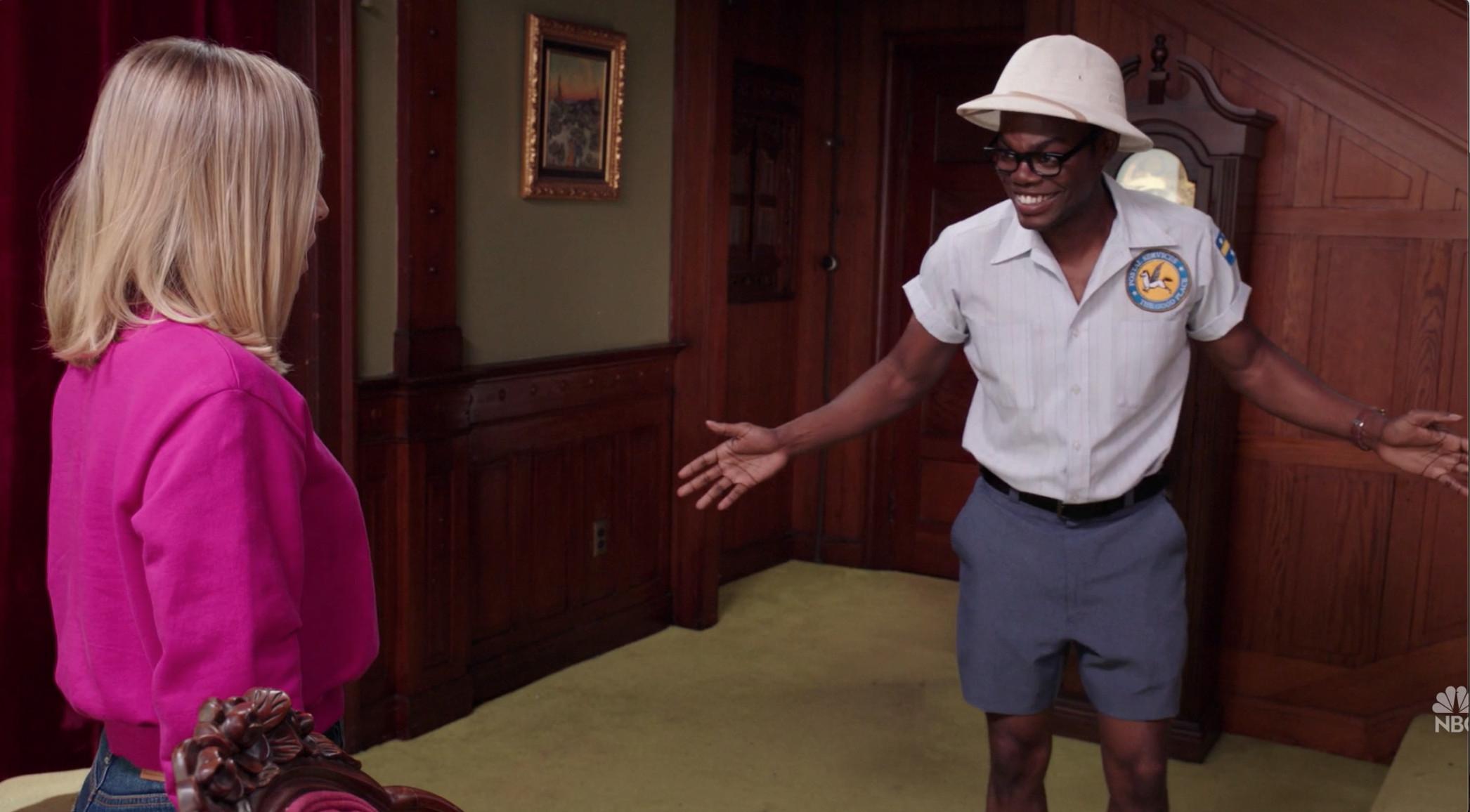 We’ve got Chidi in a tight-fitted mailroom outfit—which he’s confirmed to be wearing next week when they visit IHOP. Congratulations to all of us, especially Thirsty Chidi Twitter.