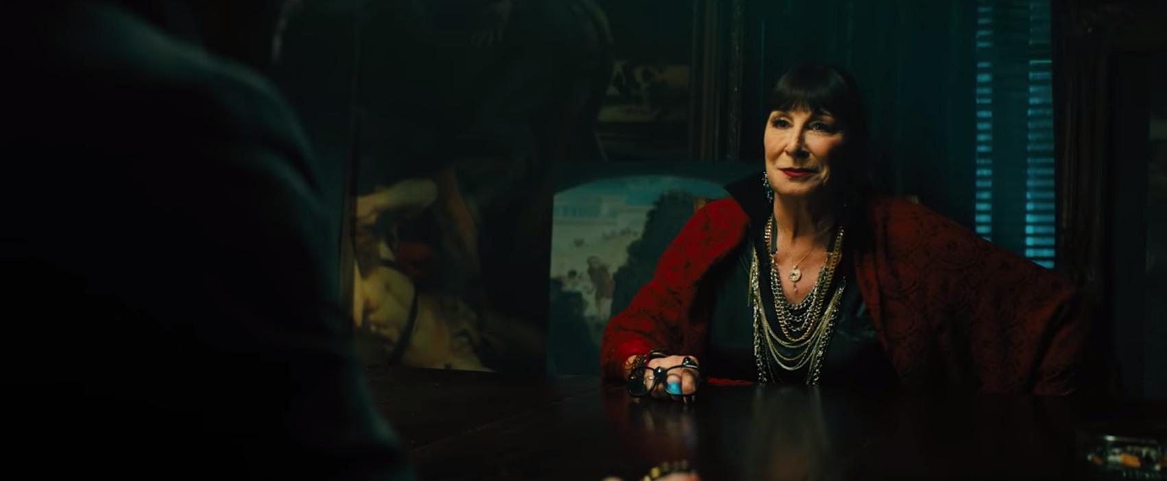 John seeks “passage” from this woman, played by Anjelica Huston, who we know is called the Director, thanks to some casting news revealed last May. I’m getting some major bohemian mom vibes from her, and John is holding a rosary when he meets with her.