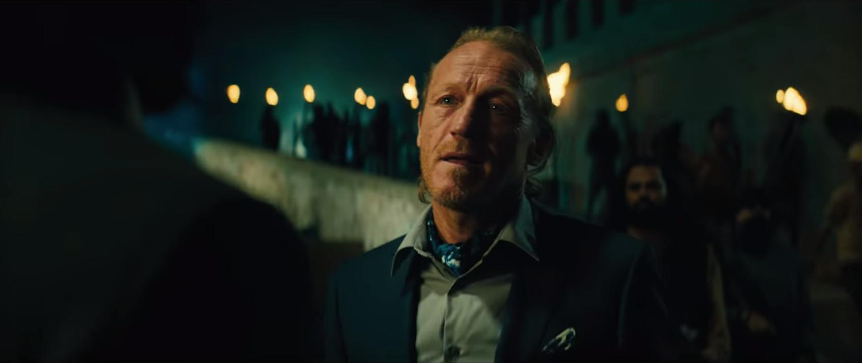 HELL YES, THAT’S BRONN FROM GAME OF THRONES. Interestingly, Parabellum isn’t anywhere on Jerome Flynn’s IMDb or Wikipedia page. Perhaps his role was being kept secret—the preceding John Wick movies had a main antagonist, so maybe that’s where he fits in. That handkerchief definitely screams, “I’m the villain.”