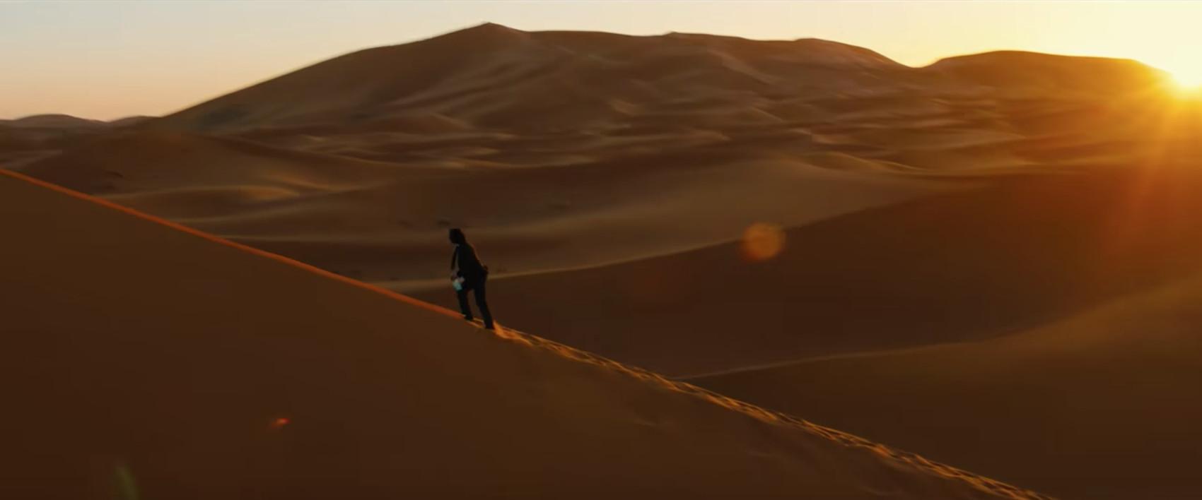 Lower your heart rate for a few seconds with a relaxing shot of John walking through a desert.