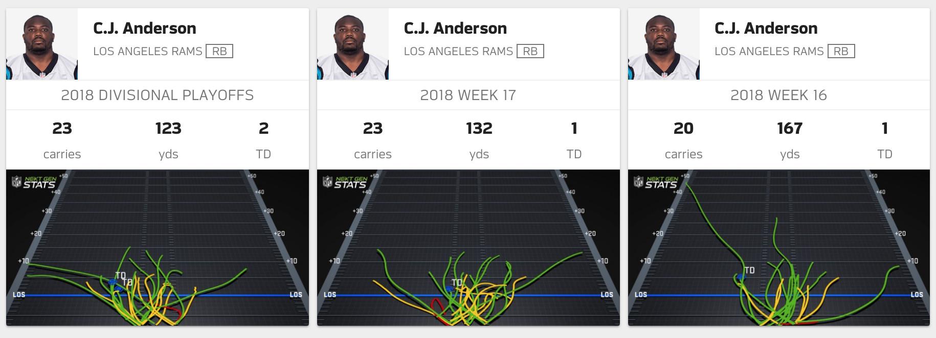 But for all those stars, the X-factor who could swing this matchup isn’t an MVP candidate, a favorite to win Offensive or Defensive Player of the Year, a member of an All-Pro team, or even a Pro Bowler. Hell, just a month ago he thought his season was over. He’s Rams running back C.J. Anderson, and as he’s proved over the last three games, he may be exactly what the Rams need to clear their biggest hurdle yet.