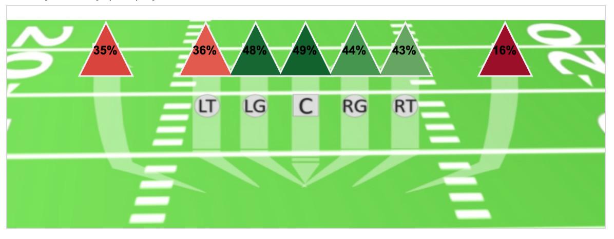 To be clear: New Orleans’s weakness at defending runs up the middle is far from a fatal flaw—a 49 percent success rate is only slightly worse than the league average of 47 percent on runs in that area of the field. But that weakness could be exacerbated in the NFC championship game, as the Saints will be playing without defensive tackle Sheldon Rankins, who tore his Achilles in the first quarter of the Saints’ 20-14 win over the Eagles in the divisional round.