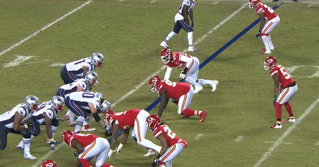 Two incomplete passes later, New England once again found itself in 3rd-and-10. Brady dropped back and cooly hit Edelman over the middle, this time picking up 15 yards to move to the Chiefs’ 30-yard line.