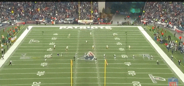 You can see that it’s kind of a miracle that Slater even got into position to make this play, as he bobbed and weaved between three Steelers blockers and covered 40 yards to end up exactly where Coates was headed. But he failed to bring Coates down, instead flinging the Pittsburgh player in the opposite direction where there were yards to be gained.