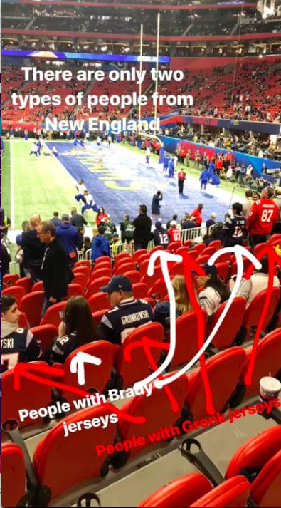 So far as I can tell, 90 percent of the people from New England fall into one of two categories: those currently wearing Tom Brady jerseys, and those currently wearing Rob Gronkowski jerseys. (The other 10 percent are newborns or people who are not allowed to wear Patriots jerseys at work.) As evidence, here’s a picture I took at a recent social gathering of New Englanders in Georgia:
