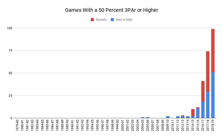 No team is yet within range of fulfilling Arseneault’s prediction—even the Rockets are at just 51 percent this season—but the league is growing closer every year. Long-range enthusiasm has spread across the NBA and filtered down to basketball’s lower levels, and not only are 3-pointers not going away, but all signs lead the movement’s evangelists to think it will continue to grow. Rockets GM Daryl Morey might not be the last point of progress, but rather just the first man to twirl a twig and call it a tool.