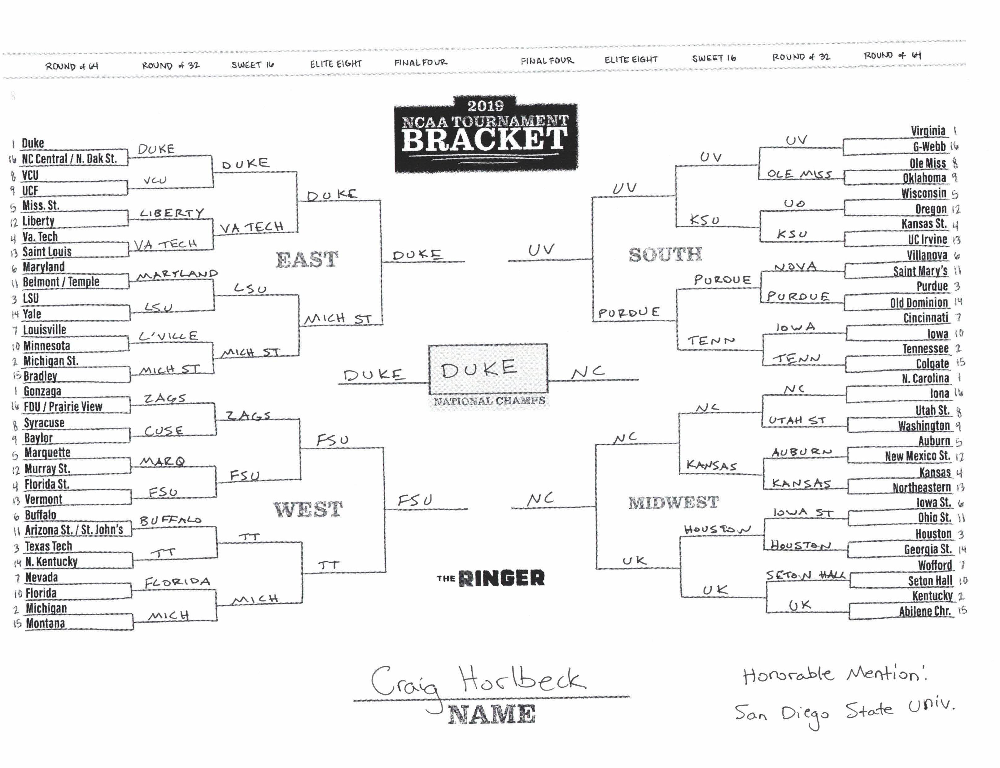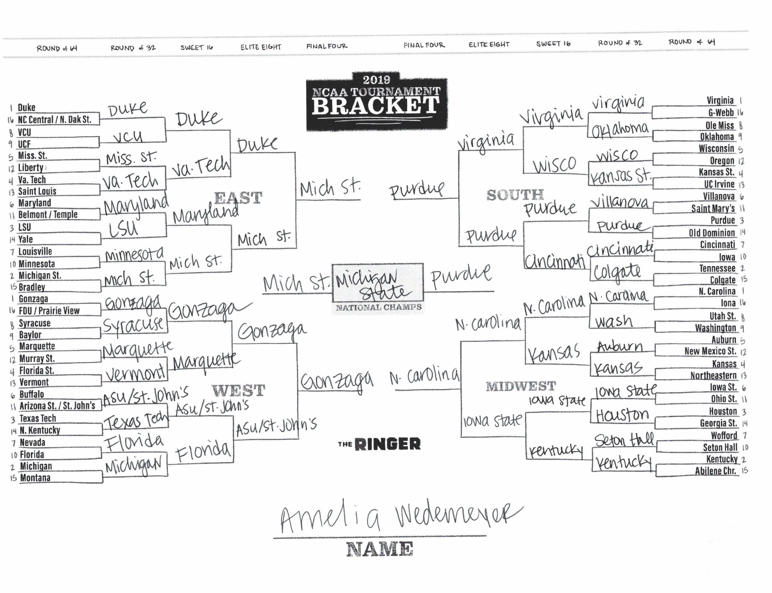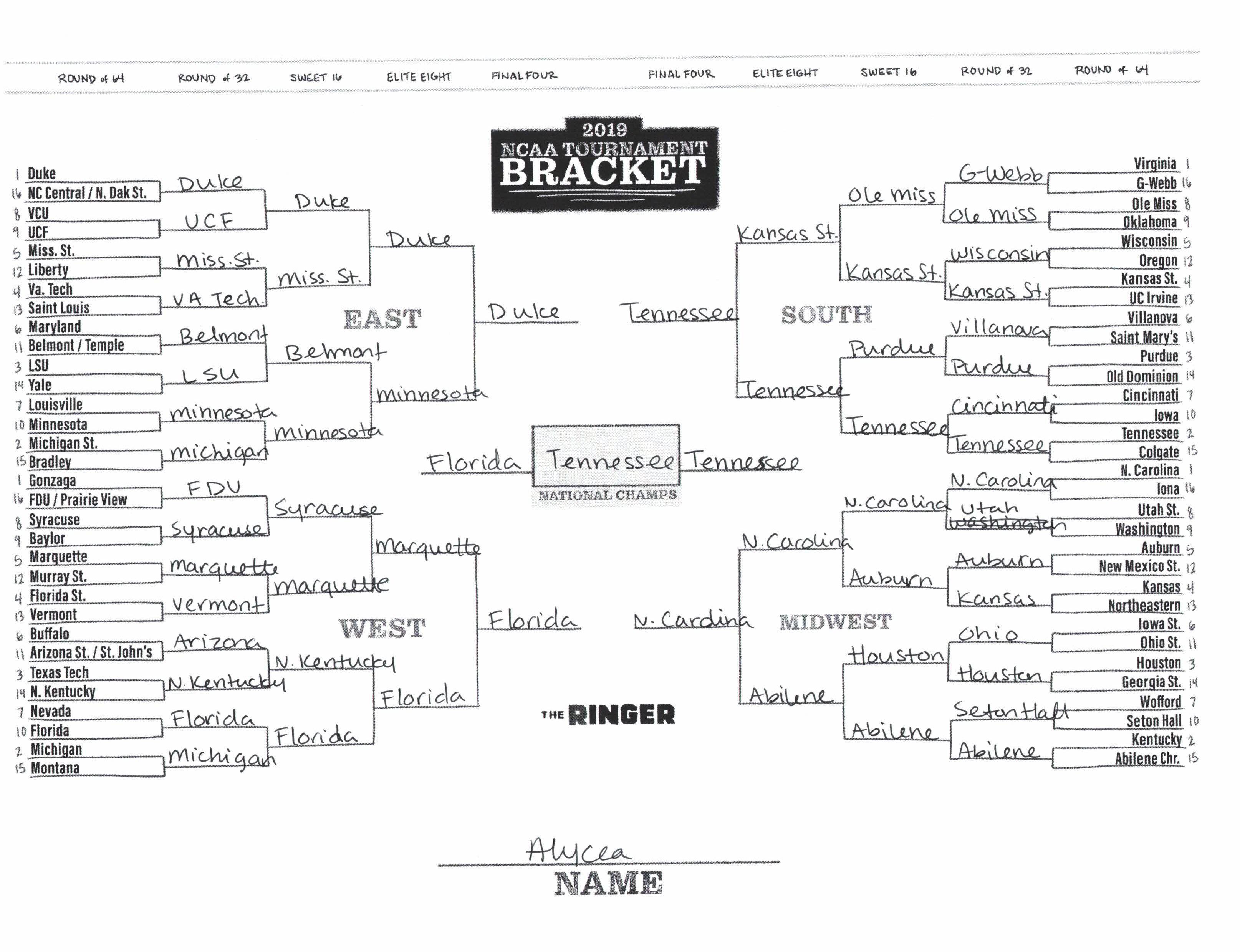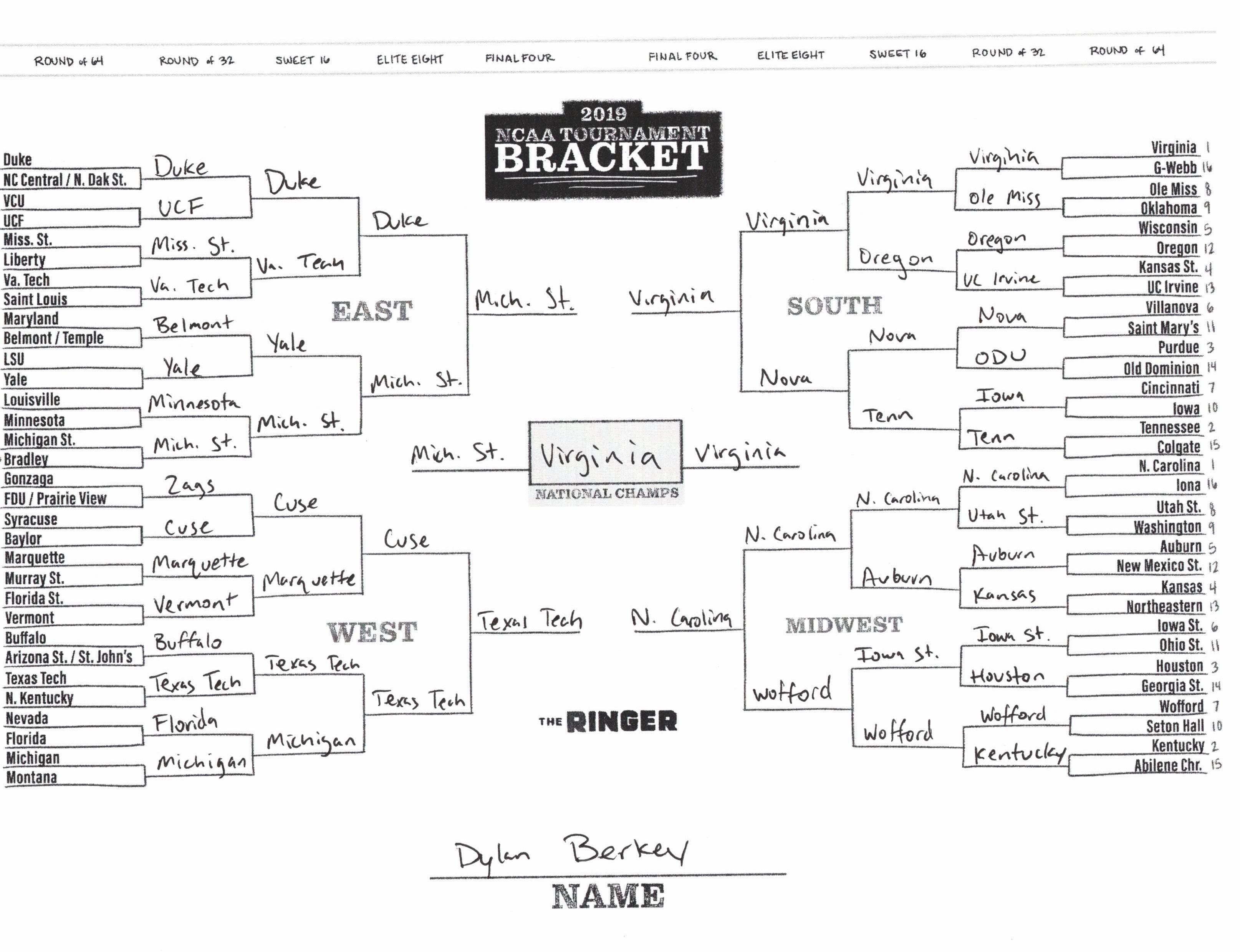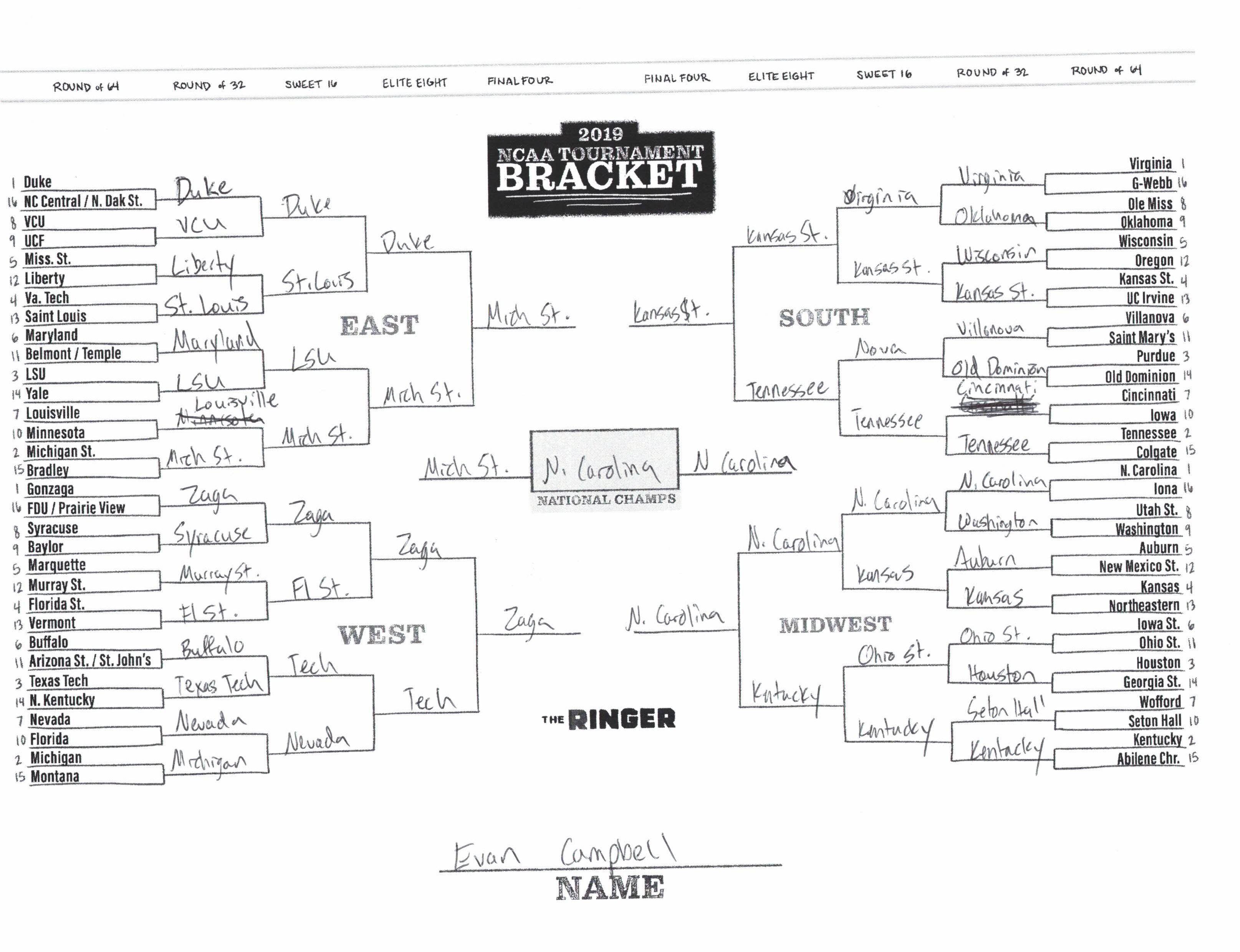 The 2019 NCAA tournament is here, and that means it’s time to talk about Zion, office pools, Zion, Cinderellas, and Zion. It also means that it’s time for Ringer staffers to publish their sure-to-be-accurate March Madness picks. Some of the brackets below were filled out by people who know the correct way to spell Mike Krzyzewski. Others were filled out by people who believe that Ja Morant was a contestant on The Masked Singer. All are guaranteed to be right.