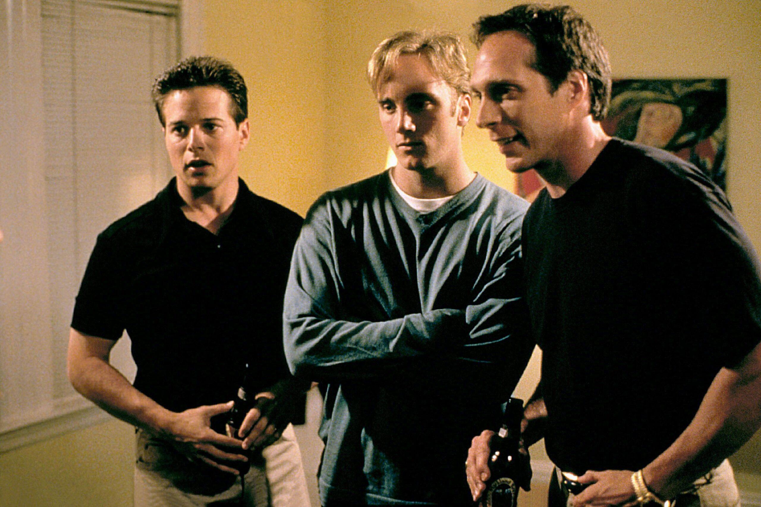 Recalling the scene where the cops tape a recording device onto Scott Wolf’s character’s crotch, Fichtner says, “We got in a little tiny bathroom. There wasn’t room for anybody. There was a boom in there, the four actors in the scene, and Doug with his camera. He would move that camera around so seamlessly. I remember that more than anything. And Jay Mohr being a maniac.”