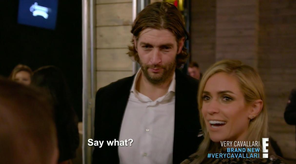 Is it a wine chiller? That would track with Jay Cutler’s previous displays of oenophilia. But that’s neither here nor there, because the real gem is when Kristin shows him a product from her baby line and says, “It’s for Carrie Underwood. I’m gonna need you to take it over there for me.”
