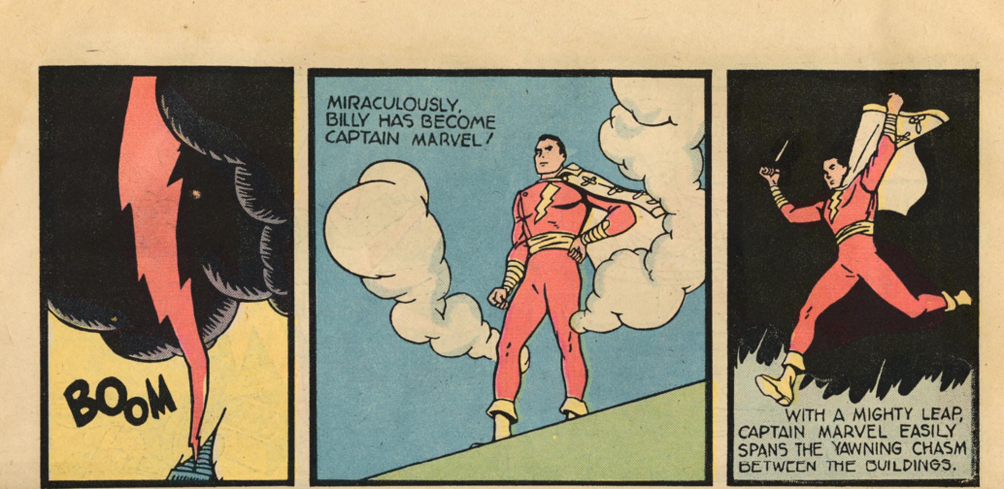 Created by Bill Parker and C.C. Beck, Captain Marvel was basically Superman—then the most popular superhero—but if his alter ego were the kid who reads the comics instead of a square-jawed beat reporter from the Midwest. And if said superhero had a command of, rather than a vulnerability to, magic. Eventually, DC Comics filed a copyright lawsuit against Fawcett Comics, on the grounds that Captain Marvel and Superman were too similar. Fawcett discontinued its title in 1953, and Captain Marvel lay dormant for 20 years, until DC licensed the character in 1973, and relaunched Captain Marvel alongside Superman, under his own title: Shazam! In the meantime, however, the name “Captain Marvel” fell into public domain, and was picked up by Marvel Comics. So for legal reasons, Captain Marvel couldn’t appear on screen as his big, red, affable self, until now. Sort of.