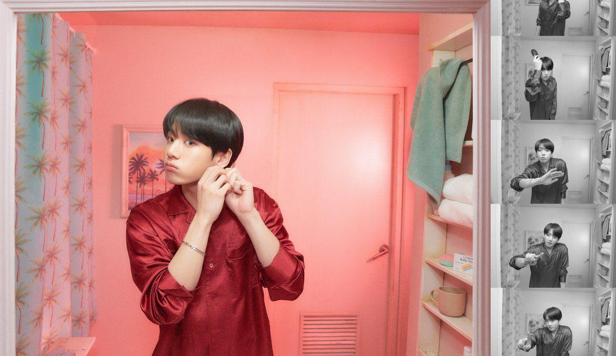 Jimin’s original debut look was based around flatbills, bandanas, and abs. Seriously, that was his whole thing. Thankfully, someone seems to have come to the realization along the way that the whole “pastel fairy prince” aesthetic works a lot better for him, and lo: A hair color chameleon was born.