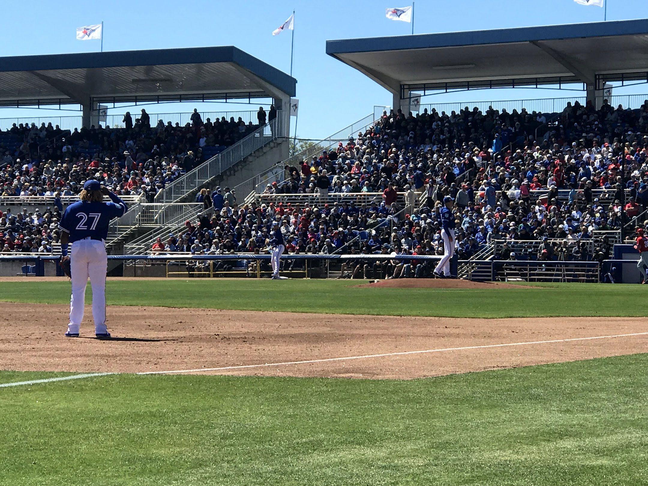 Guerrero has consistently turned his minor league at-bats into main events. His reputation precedes him, in part because of his famous lineage but also because of all he has done to live up to that family name. He has raked long balls into brick-laid hotel walls and out of parks altogether; he has capped off a four-hit performance with a game-winning home run for good measure; he has elevated a novelty spring exhibition into an impromptu moment of soaring Canadian national pride, hitting a walk-off blast in the same Montreal stadium where his father once played with the Expos for the first half of his career, surely one of the goose-bumpsiest moments in spring training history.