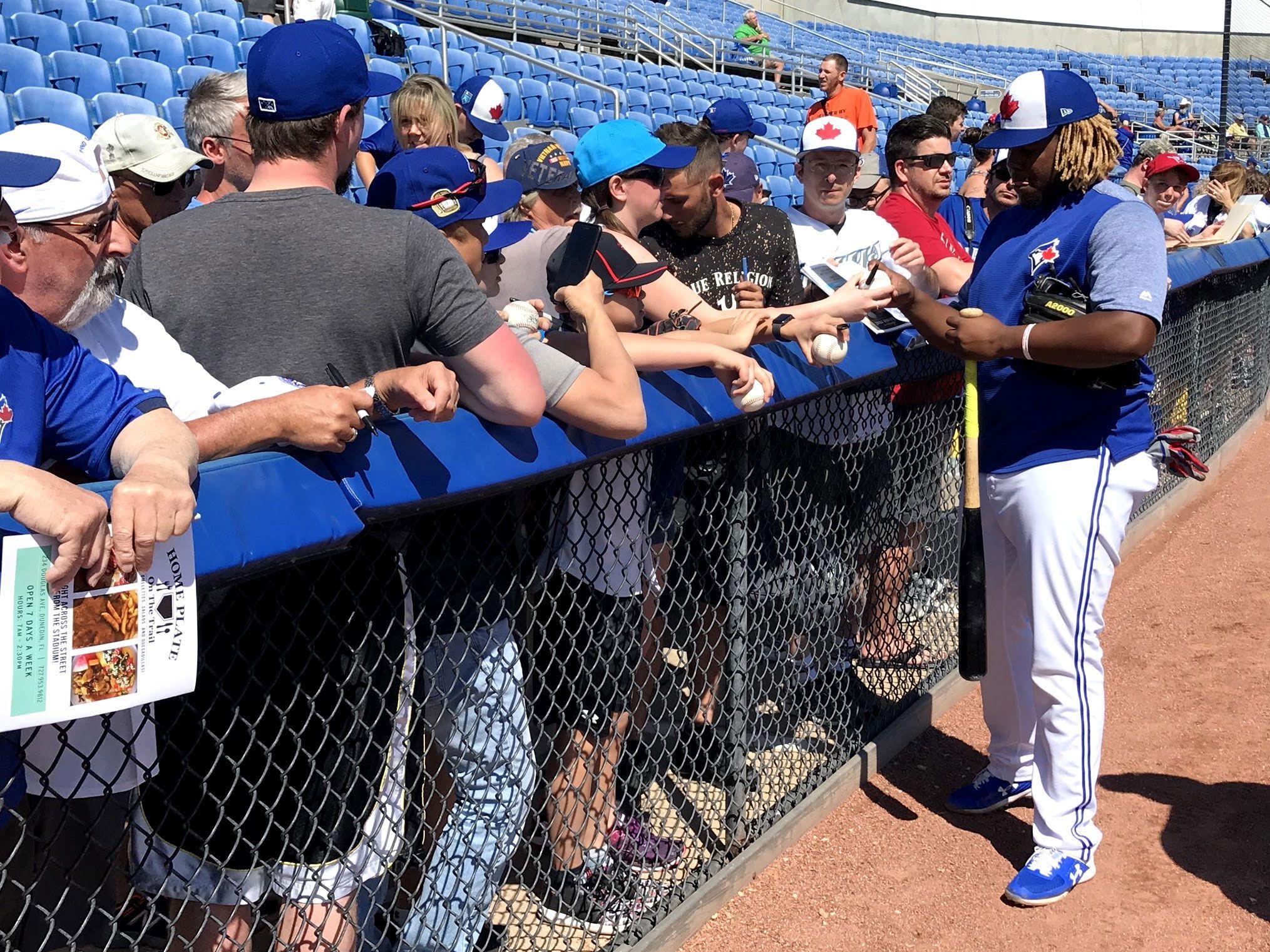 Well, for one night, at least. Guerrero records one hit in a Friday-night game but is given a rest on Saturday, much to the chagrin of a fan in a Montreal Expos cap named Pascal Parent, who strolls along the Delta Dental concourse with a companion, looking extremely bummed out amid the other fans in their Patriots hats or their Star Wars garb. Hoping to see the son of one of his very favorite Expos, “I was checking the net for so long,” Parent says, waiting to see when Guerrero would return to the lineup. He bought tickets for two weekend games, and made the four-hour drive down from Montreal.