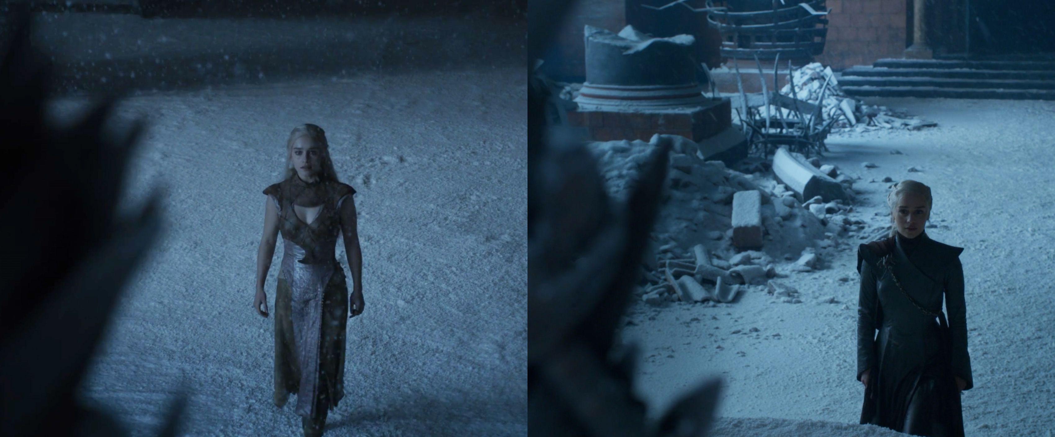 When Daenerys finally reaches the throne room in the series finale, the parallels to her Season 2 vision are not subtle: