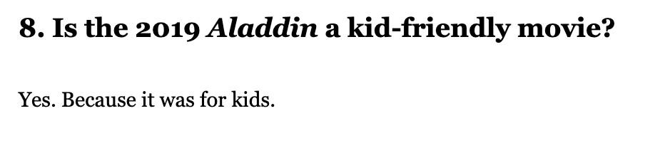 8. Is the 2019 Aladdin a kid-friendly movie?