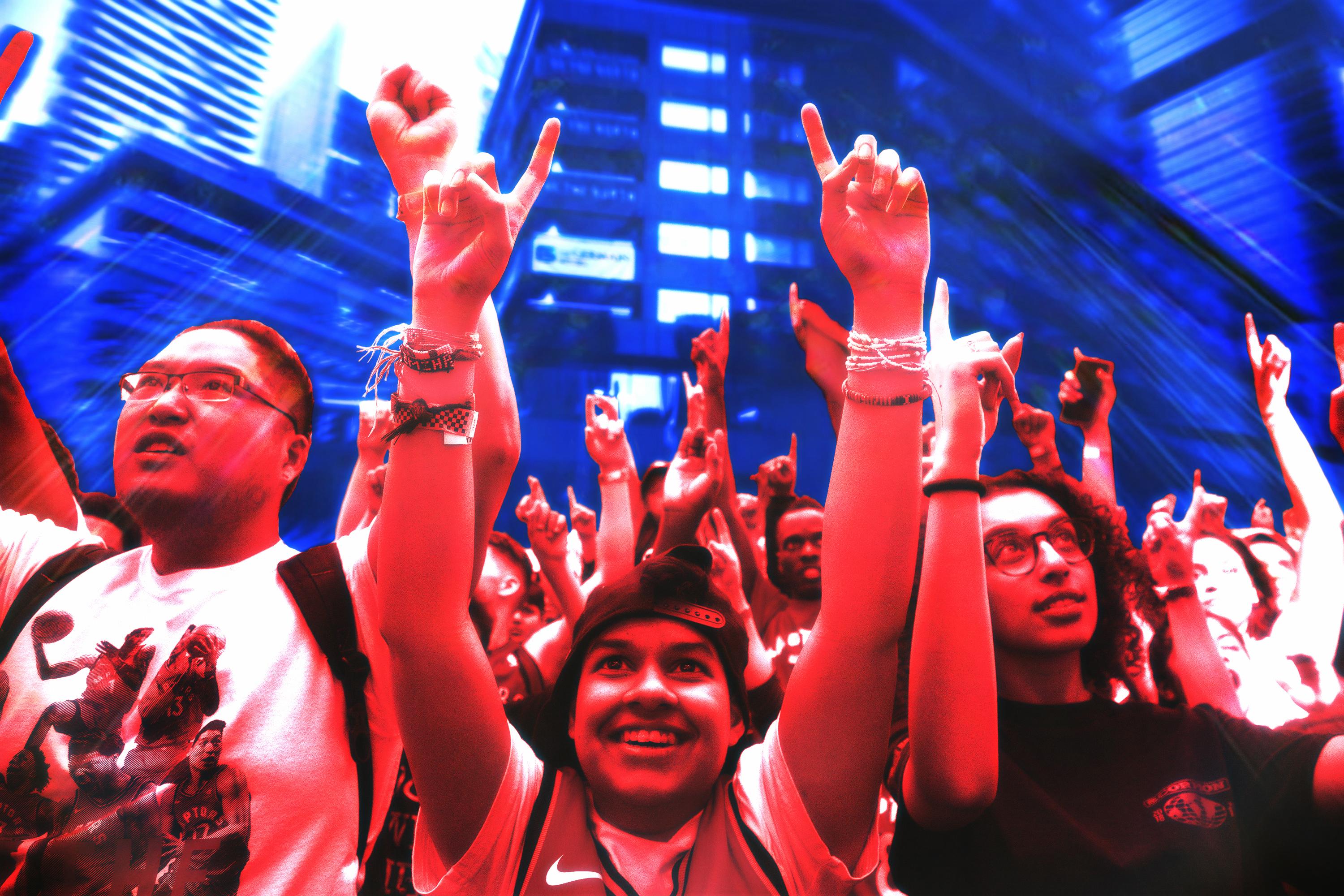 That was especially true in Jurassic Park, the holding pen where superfans gather outside Scotiabank Arena to watch games on a giant video screen. During the Eastern Conference playoffs, that area was consistently packed with people wearing red and black and classic purple—even when it rained (which it tends to do in Toronto) and even when it was cold (which it tends to be in Toronto). They’re a lovable bunch of fanatics, and I decided to embed with them and watch the country’s long-awaited first NBA Finals game in their company. Ujiri was right. It was crazy.