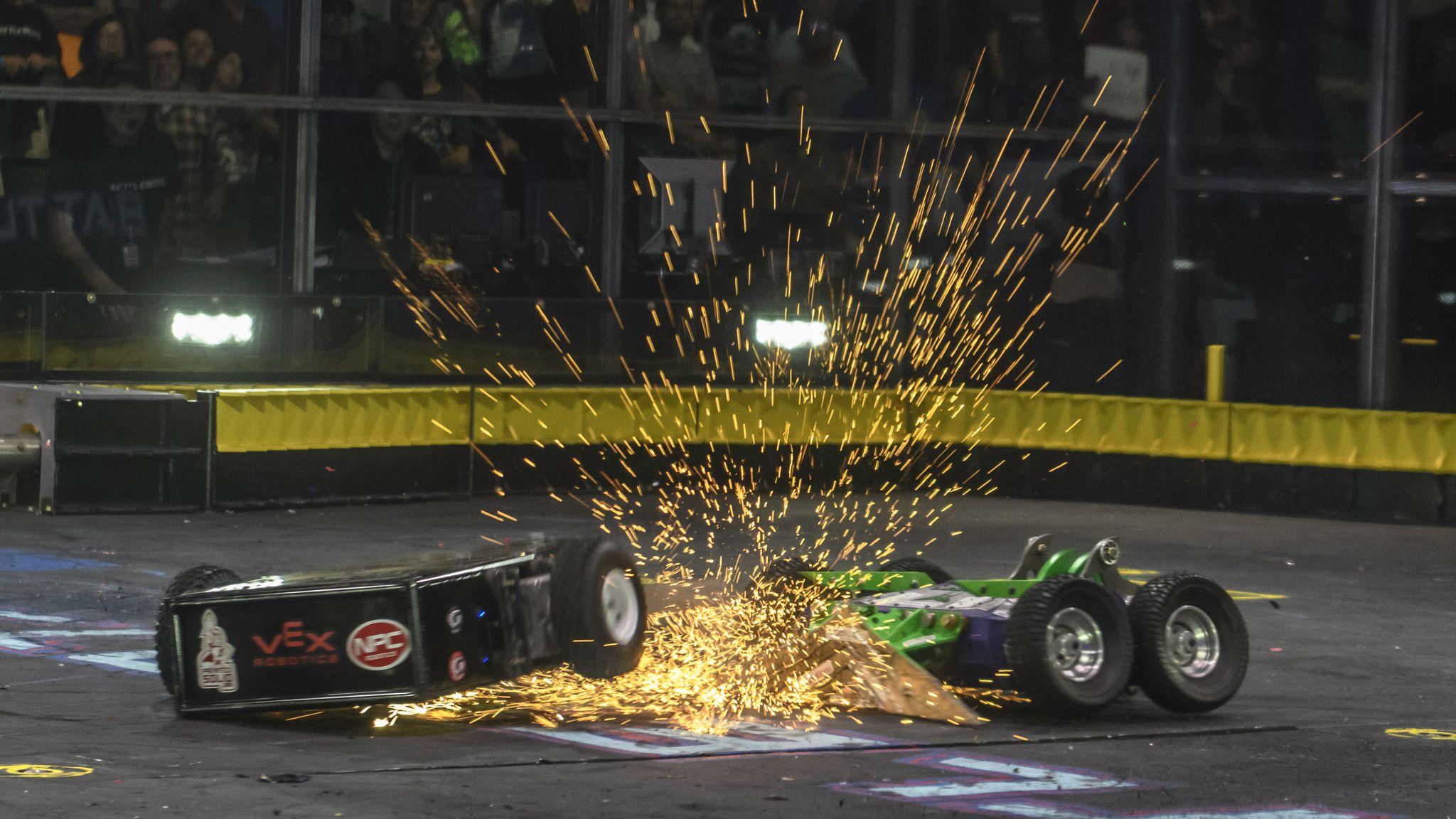 The sport traces its roots back to the mid-1990s, when underground robot cockfighting rings were thriving in abandoned warehouses along the San Francisco seashore. A 1-foot wooden railing was the only thing that separated the audience and the action. Jamie Hyneman and Adam Savage, who would later star in the TV show Mythbusters, used a lawnmower and an old wok to build a robot so powerful that they had to withdraw it because it spewed too many pieces of opposing robots into the crowd.
