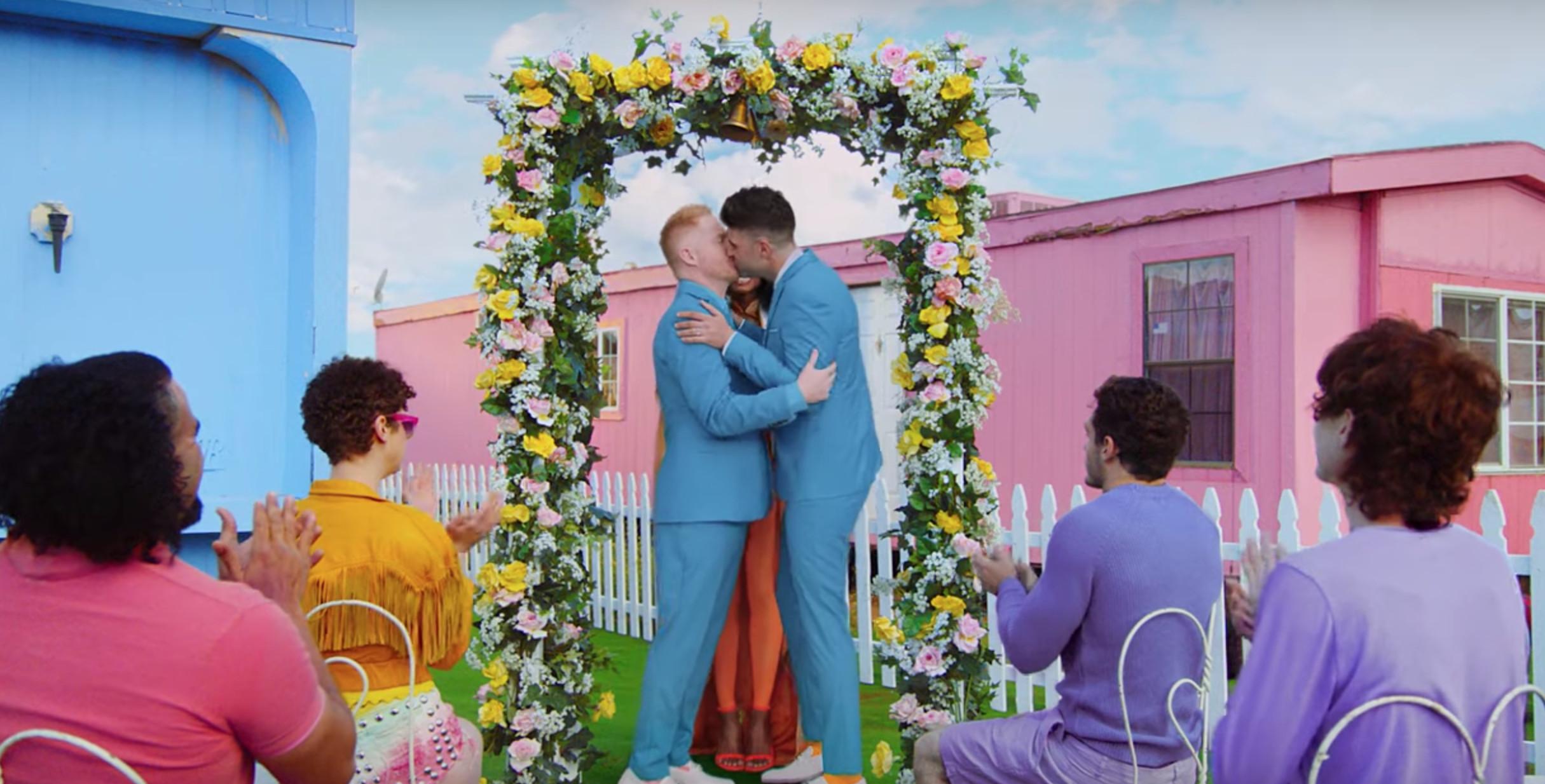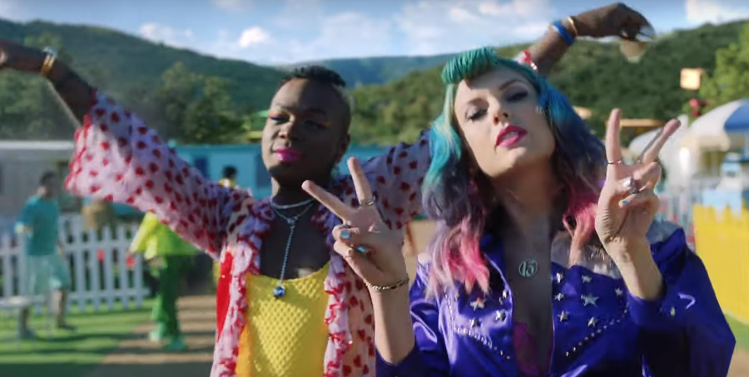 Accordingly, the accompanying music video, which came out Monday morning, features as many celebrities as she could possibly fit into the span of three minutes and 30 seconds. Not since “Bad Blood” have we seen the singer flex her powerful networking abilities like this. But rather than feature a murderers’ row of supermodels, actresses, and pop artists, she has instead curated a decidedly LGBTQ-friendly roster. The video includes appearances by Ellen DeGeneres, RuPaul, Billy Porter, Laverne Cox, Adam Lambert, Hayley Kiyoko, Jesse Tyler Ferguson and his husband Justin Mikita, the entire Queer Eye cast, YouTuber Todrick Hall and his collaborator Chester Lockhart, Olympian Adam Rippon, comedian Hannah Hart, and plus-sized model and dancer Dexter Mayfield. Ryan Reynolds and Ciara are in there, too. So is Katy Perry in a hamburger suit. [Sigh.]
