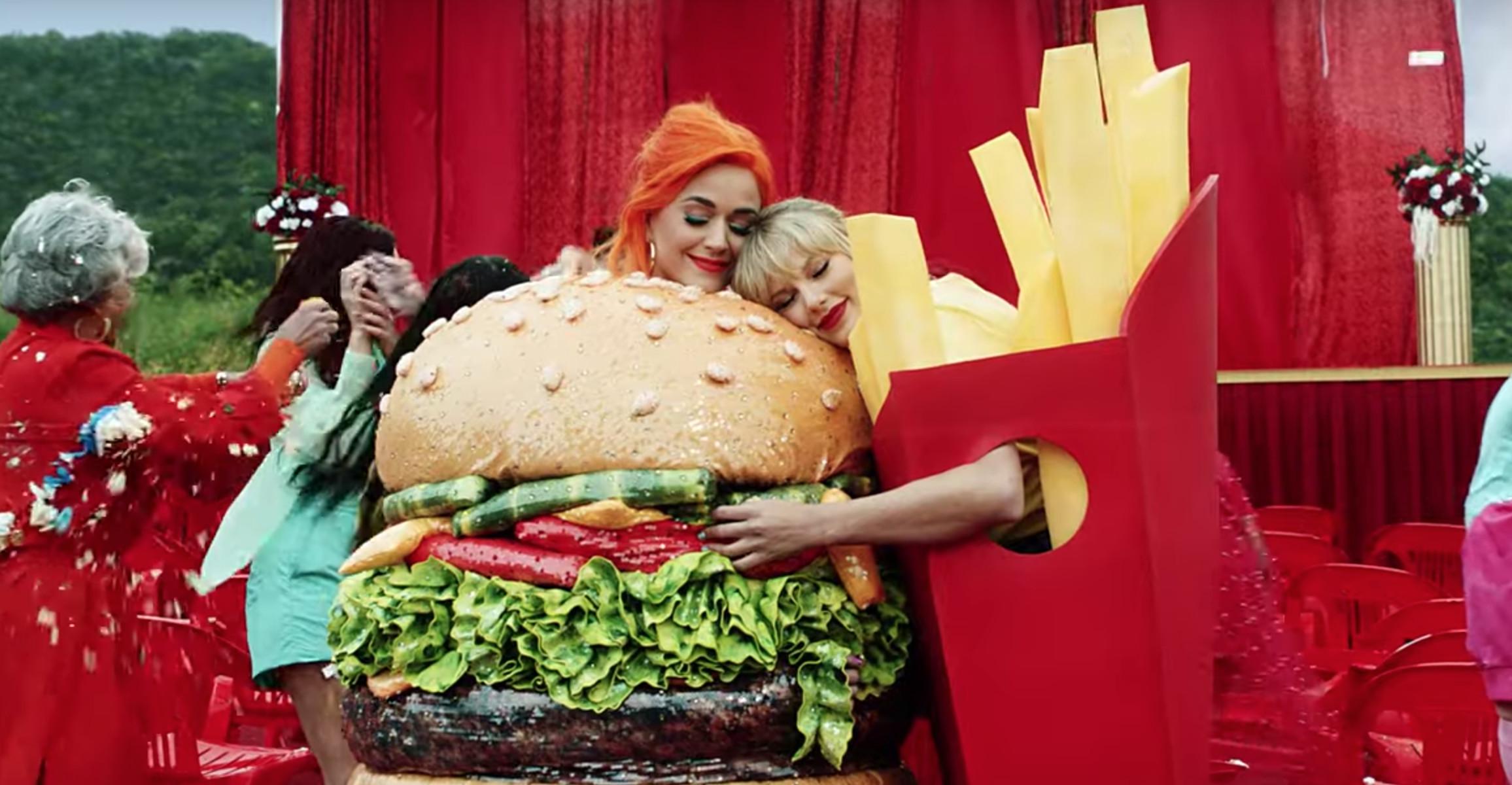 From the over-the-top, bubblegum-trailer-park dress code of the music video to a literal reappearance of Katy Perry’s hit afterparty burger suit, the Met Gala’s influence here is apparent.