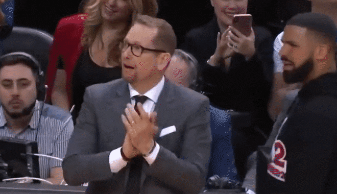 44. Drake gives Toronto Raptors head coach Nick Nurse a quick shoulder rub (May 21)