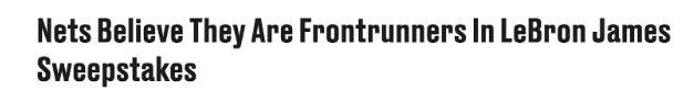 It didn’t get much better from there. When the Nets flew to Chicago to meet with Dwyane Wade and Chris Bosh, the latter showed up late and the former brought in a camera crew for a documentary he was filming. And yet, this was the headline in Nets Daily after the team’s meeting with James: