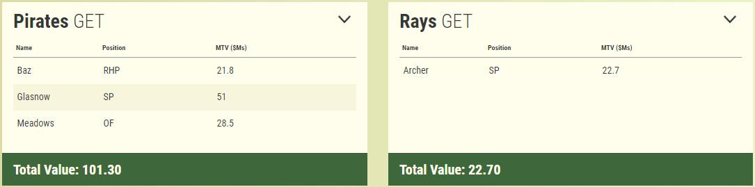 In his deadline recap at SB Nation, Grant Brisbee wrote, “if you’re making me bet on the cumulative WAR for Archer over the next three years and the cumulative WAR for Austin Meadows and Tyler Glasnow, I will probably choose Archer.” Elsewhere at SBN, Alex Kirshner called the trade “the kind of move every fan should hope their team makes” and “the perfect win-now-but-also-later move for a team that needs to take chances but can’t afford to get burned.” Both Brisbee and Kirshner—as well as The Ringer’s Zach Kram—critiqued the trade not because it was clear that the Pirates had overpaid, but because it seemed out of step with Pittsburgh’s previous moves (trading Andrew McCutchen and Gerrit Cole in January 2018) or non-moves (standing pat at the deadline in years when the team was arguably closer to contention). Compare that to the avalanche of quotes condemning the Diamondbacks’ end of the Miller trade, which ranged from Sullivan’s “clear, obvious mistake” to an anonymous executive’s “worst trade I’ve ever seen.”