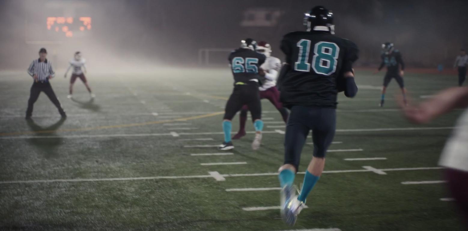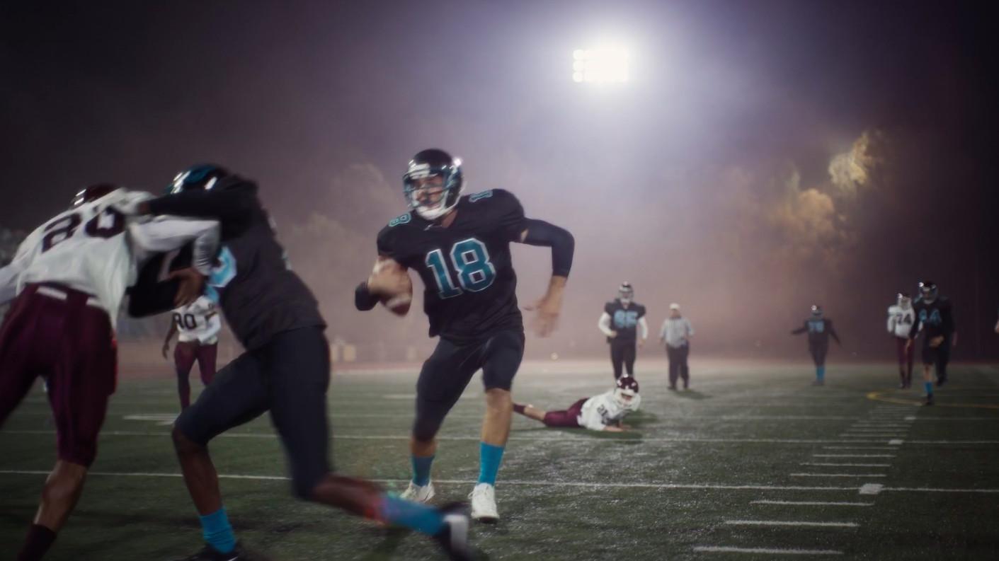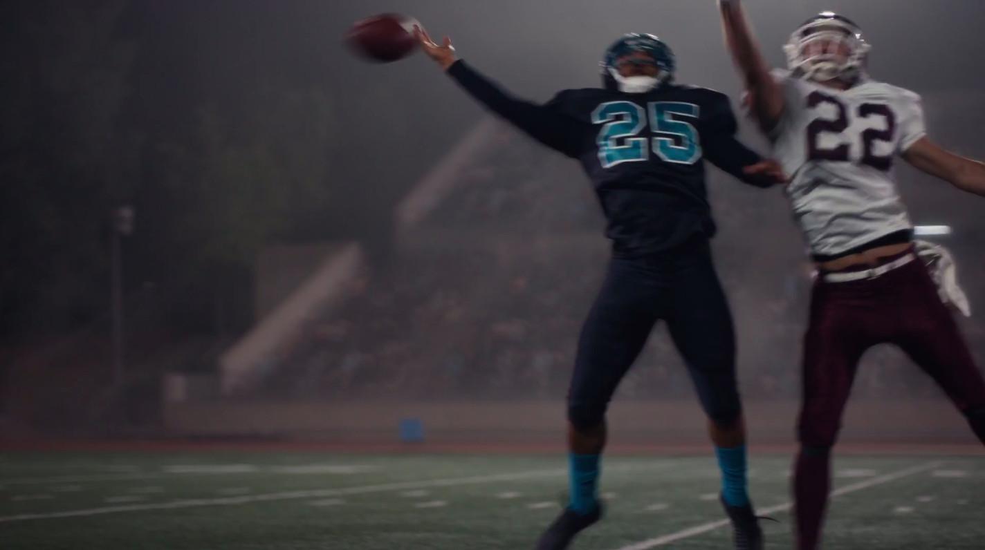 Here’s the setting: We learn before kickoff that the stakes are high for East Highland and its senior quarterback, Nate Jacobs (Jacob Elordi). The Blackhawks need to win to advance to regionals. This is Nate’s first game back since being suspended earlier in the season after police arrested him because they suspected he had battered his girlfriend (which he did, in fact, do), and also could be the last game of his high school career. Viewers are shown three moments from the game: