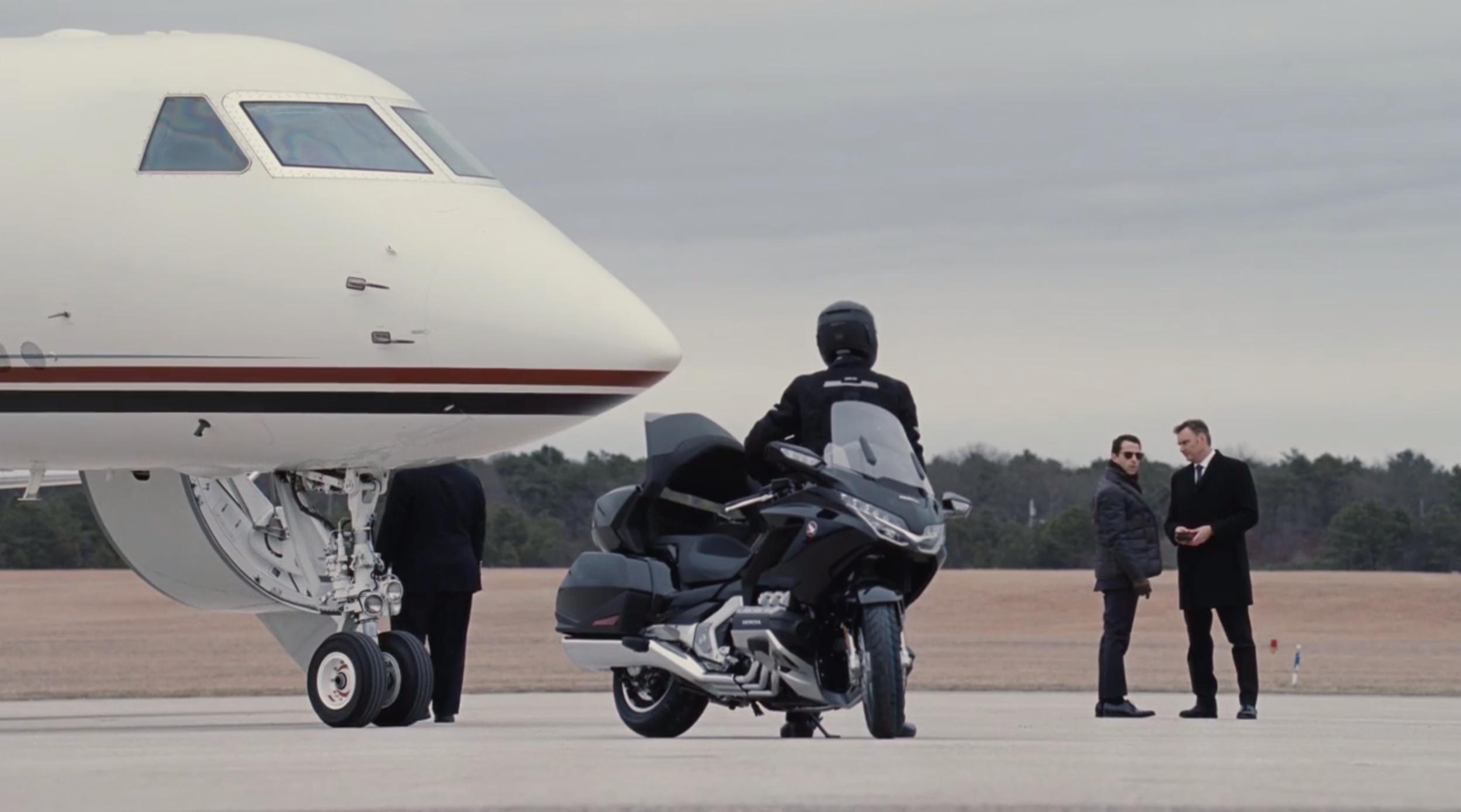 Actually, the person that first hired me on that job is the stunt coordinator for Succession, Stephen Pope. He asked me if I was available to be the motorcycle chauffeur for Kendall. They used a big Honda Gold Wing for it. One of the brand-new Hondas.