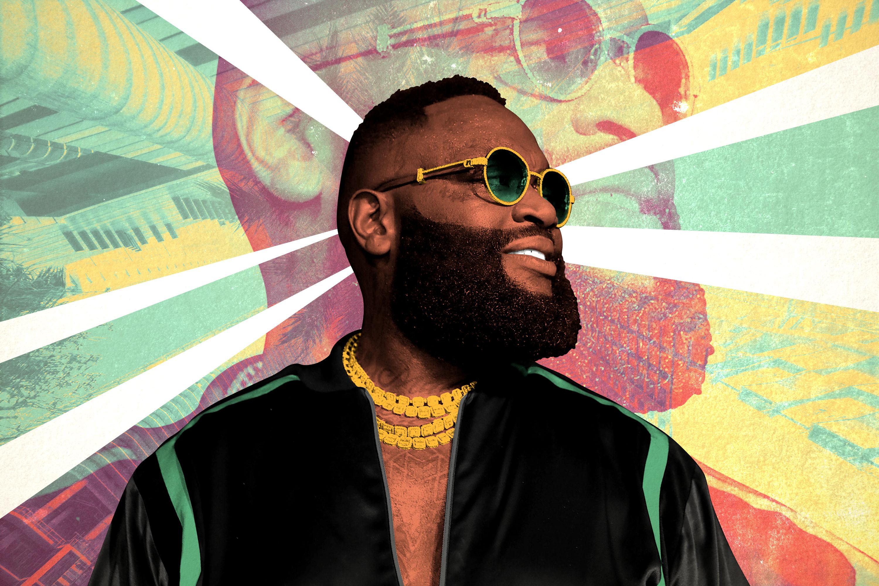 First with Port of Miami and then Trilla, Ross cemented a hustler’s persona, becoming one of Def Jam South’s biggest cash cows in the process, along with Young Jeezy. He’d gone from riding Daytons to cutting eyes through the cracked windows of Maybachs, from switching lanes to whipping speedboats, from strength to strength, all off of drug money, in this world he created. Then in 2009, 50 Cent “outed” Ross as a former corrections officer which, along with the tepid critical reaction to his first two albums, could and should and might have, in a previous era, diminished his commercial appeal. But instead of backtracking or explaining anything, Ross doubled down with Deeper Than Rap, exploding his alter ego beyond its logical, extravagant extreme. (On a song literally titled “Yacht Club,” he tours the Caribbean with his ill-gotten gains and a gaggle of women who don’t speak English, imagining himself as the black Tommy Lee.) He appeared on an XXL cover that year blowing cigar smoke, next to a pull quote that read “I never had a credibility problem and still don’t.” It didn’t really matter that his origin story was fishy, just like it didn’t really matter that his Louis Vuitton sunglasses were fake, so long as his work was making a lot of money for someone (Def Jam, his peers), which is largely why he survived 50’s offensive. In the same way that many of today’s TV antiheroes are somewhat indebted to Tony Soprano, both Drake (former Degrassi star turned mob boss) and Pusha T (coke rap specialist who hasn’t touched a brick in well over a decade) owe a little to Rick Ross. Many rap fans view Ross brushing off 50’s attacks as an acceleration point in the loosening of rap’s strictures on “realness.” “The rumors turn me on, I’m masturbating at the top,” he raps on “Mafia Music.”