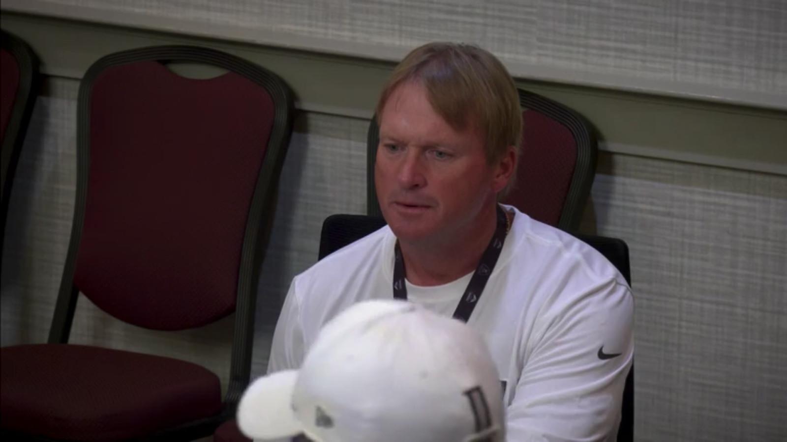 Yet Gruden is not thrilled with the (lack of) progress that Peterman is making either, and when asked whether he wants Glennon or Peterman to play the majority of their next preseason game, Gruden spends a solid seven seconds making this face: