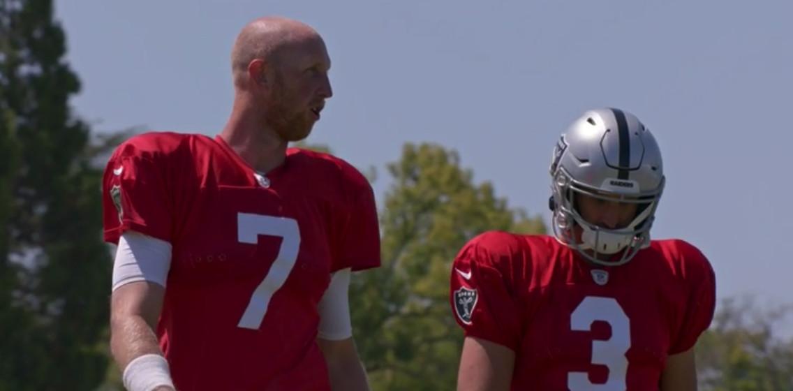 In one of the finest pieces of editing in cinematic history, Hard Knocks captures a conversation between tight ends coach Frank Smith and tight end Darren Waller in which Smith is trying to convince Waller to watch Fight Club. Smith explains it is about “the duality of man, the good side and the bad side.” With that, the camera cuts to backup quarterbacks Mike Glennon and Nathan Peterman.