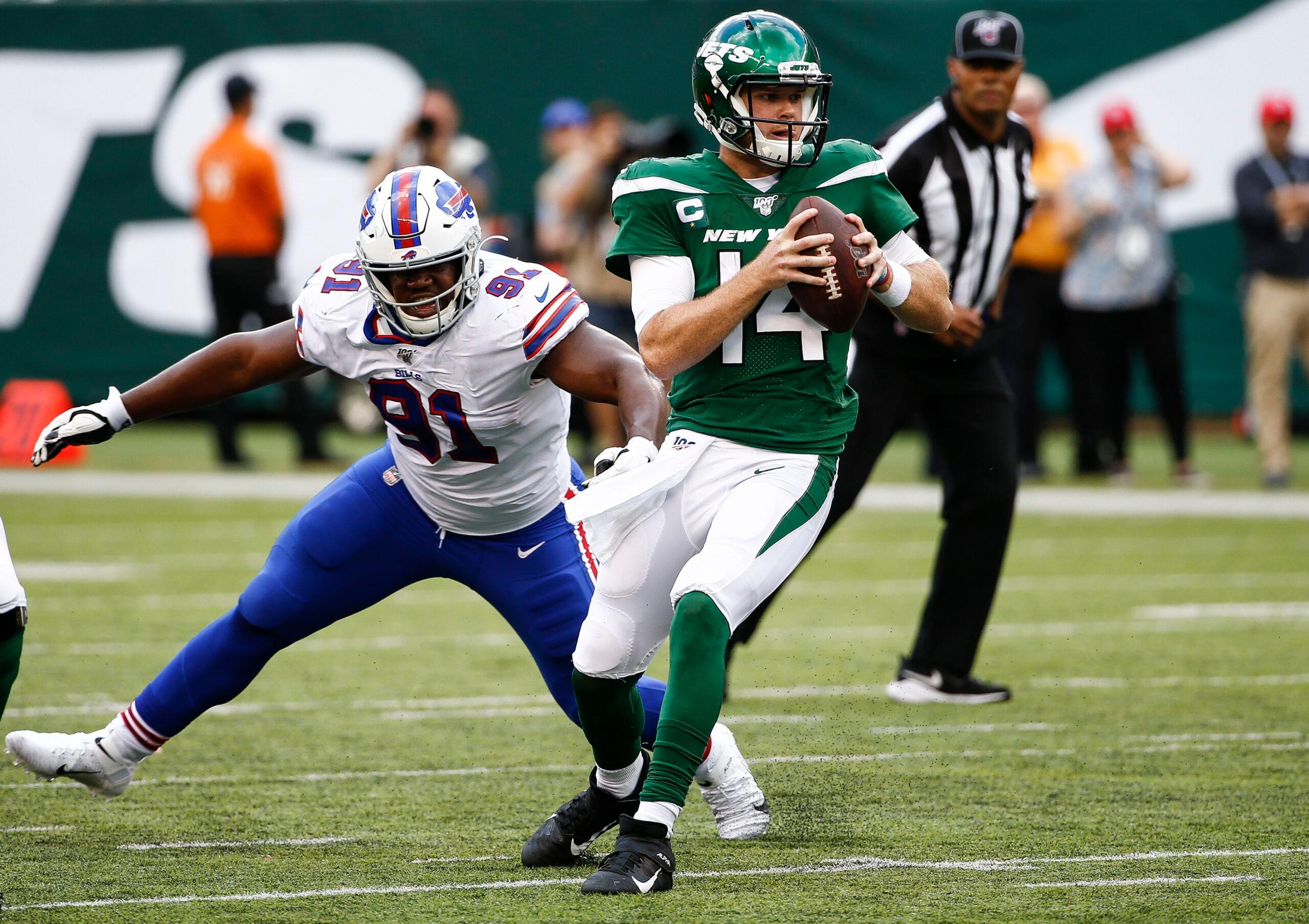 5. It’s hard to draw many conclusions about the new-look Jets offense from a frustrating 17-16 loss to the Bills. In their first game under head coach Adam Gase, the Jets drew the unenviable task of facing Sean McDermott and Co. The Bills finished second in defensive DVOA last season, and they dialed up a host of creative pressures on Sunday that stifled Sam Darnold and the Jets’ passing game. Buffalo consistently lined up with five or six players at the line of scrimmage only to rush four and flood the defensive backfield. That presented a tough challenge for a second-year quarterback and a center who signed with the team only five weeks ago. Darnold was pressured on 38.3 percent of his dropbacks, according to Pro Football Focus, and he actually dealt with the heat quite well for most of the game. But several crucial throws came through traffic, including two on the Jets’ final drive that resulted in incompletions and stifled their comeback efforts. Still, there are some positives to glean from Sunday: Darnold’s immediate rapport with offseason addition Jamison Crowder (14 catches on 17 targets) is a good sign, and there should be better days ahead against weaker pass defenses.