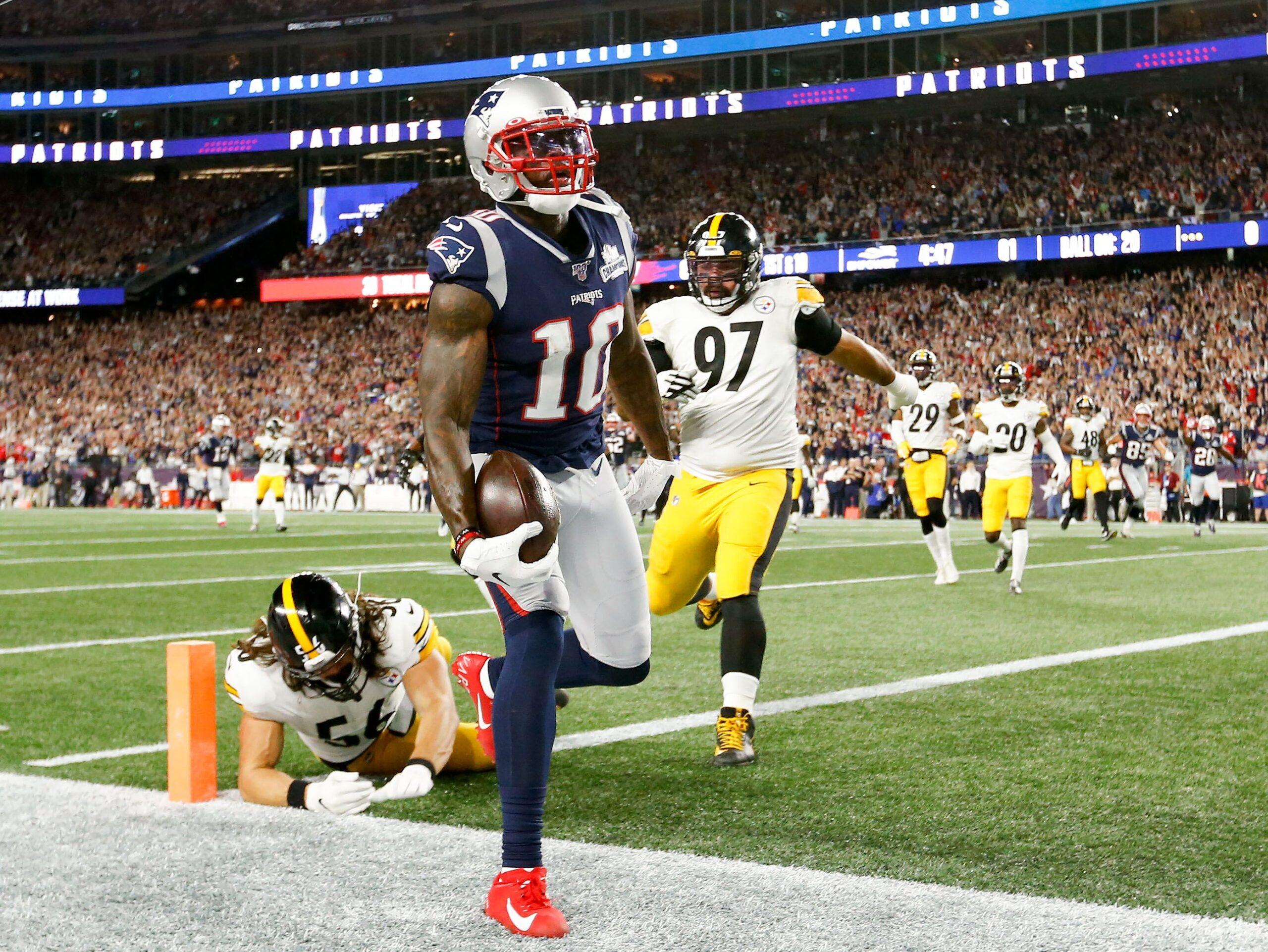 9. Josh Gordon’s performance on Sunday night was a reminder of just how dominant he can be. Gordon finished with only three catches for 73 yards in the Patriots’ 33-3 thrashing of the Steelers, but two of those receptions featured the 225-pound wideout crunching hapless Steelers defensive backs. On his 20-yard touchdown catch in the first quarter, Gordon ripped through an arm tackle by cornerback Joe Haden before shrugging off a hit by 255-pound linebacker Anthony Chickillo as he strolled into the end zone. Gordon followed that up two quarters later by hauling in a 44-yard bomb despite taking a huge shot from Steelers safety Terrell Edmunds. I still cannot believe the Patriots are adding Antonio Brown to this group.