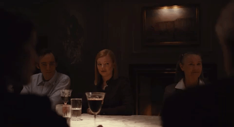 While Shiv can’t bring herself to make eye contact with her father, he begins to clink his glass with his right index finger. “Shall we?” he asks, before walking off screen. The camera finally zooms in on Shiv, who’s standing still and staring straight ahead. In the end, they’re both alone.
