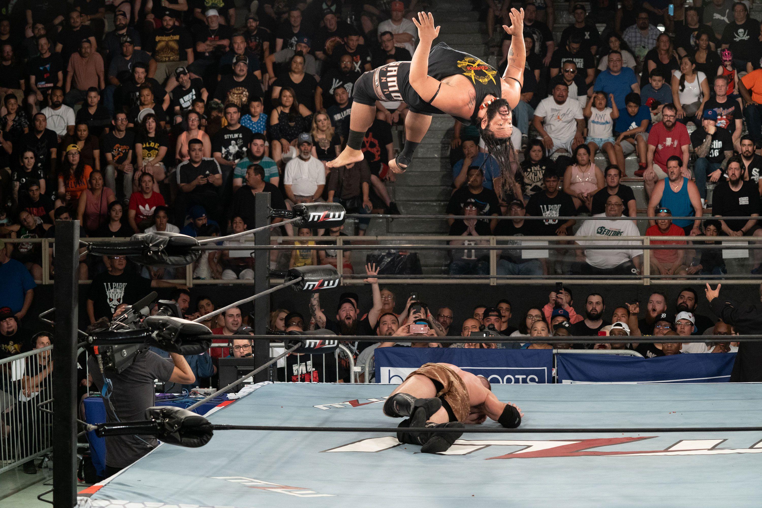NWA vice president Dave Lagana, who worked as a writer at WWE concurrently with Bauer and has also had stints behind the scenes with Impact (when it was still known as TNA) and Ring of Honor, confirms: “I follow along with what Court and them do. He’s very passionate about his brand of wrestling.” And in Lagana’s view, MLW’s success will live and die by Bauer’s singular vision, which boils down to a marriage of time-tested storytelling techniques and adaptation to modern audiences’ tastes for more dynamic physicality. Fusion is that philosophy distilled, displaying myriad fighting styles—from new-school acrobatic cruiserweight contests and six-man melees to recent-vintage hardcore clashes and classic technical two-ways—and developing internecine conflicts enhanced with stylized promos and gritty backstage skirmishes. (“Southern Psycho” Mance Warner may be wrestling’s most underappreciated freestyle mic assassin.) Blood is shed, emotions run high, and there’s rarely a minute of wasted charisma in its allotted 60. It is not just good wrestling, but great TV.