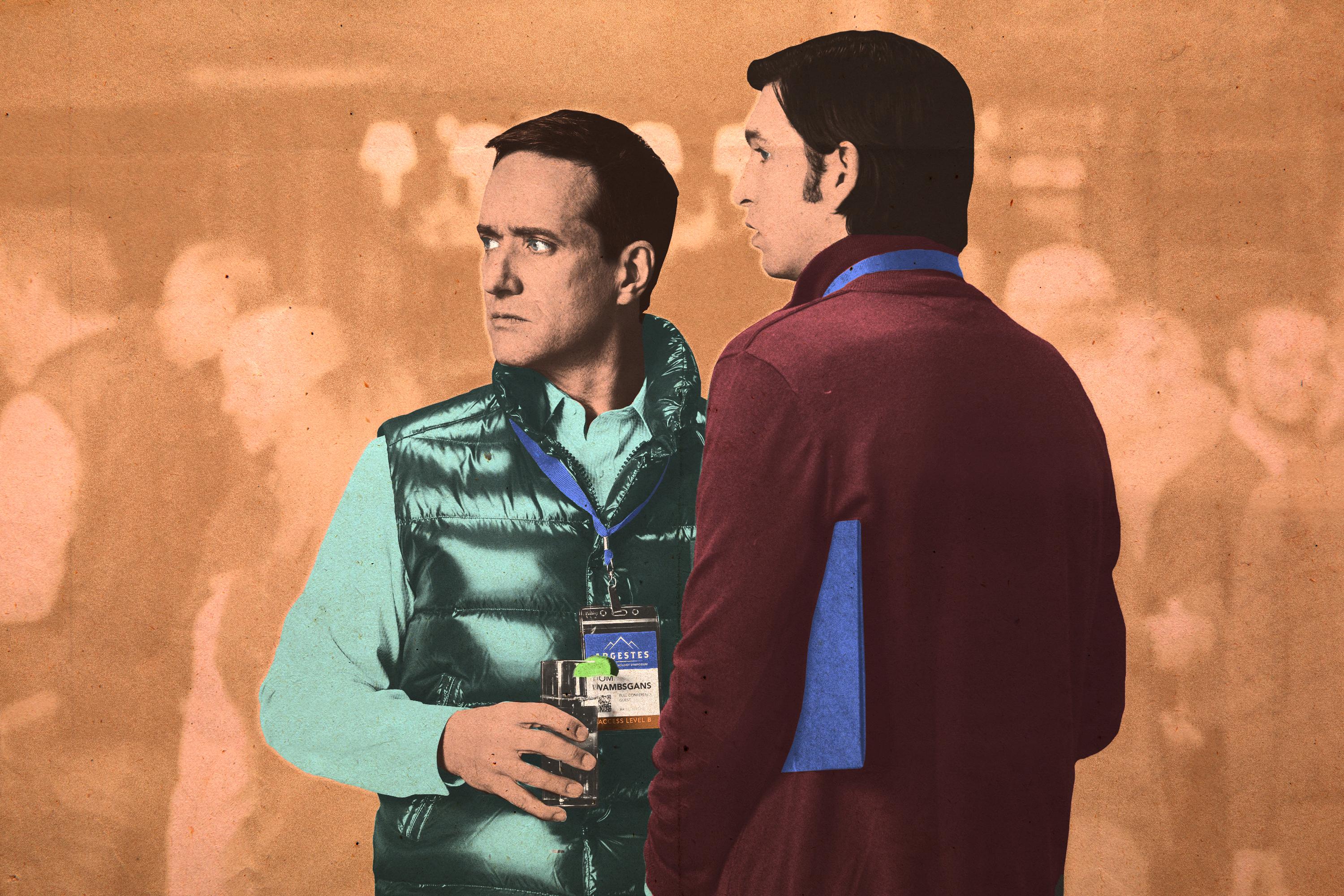 “Look at you, scanning for influence like a yuppie RoboCop,” says Roman Roy to his brother Kendall in the latest episode of Succession, both of them sporting lanyards and vests and sour expressions as they gaze across a cavernous, shiny wood room at various rivals. Wherever you go, there you are, and most of the Roy family is at a lavish conference for the point-oh-oh-oh-one percent, the kind of place where Airbus sponsors a sought-after hike; where the salads are not only not complimentary, they are 70 bucks; where at least one attendee, the poncho-clad Tom Wambsgans, raves that he feels as though he’s “fallen into a barrel of deal tits,” even if few others (those without a 300-year investing horizon or a standup gig anyway) seem to be having any fun.